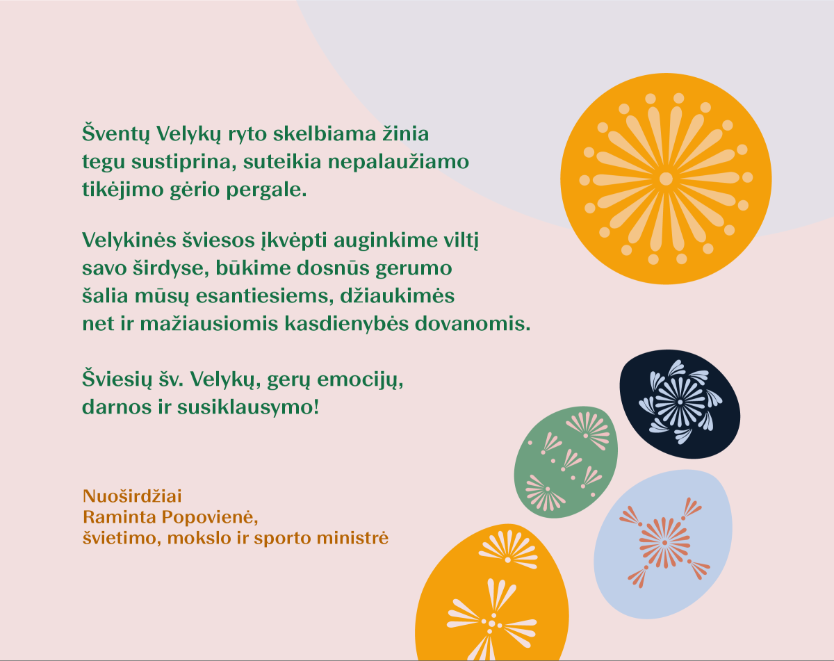 Šv. Velykų sveikinimai gimnazijos bendruomenei