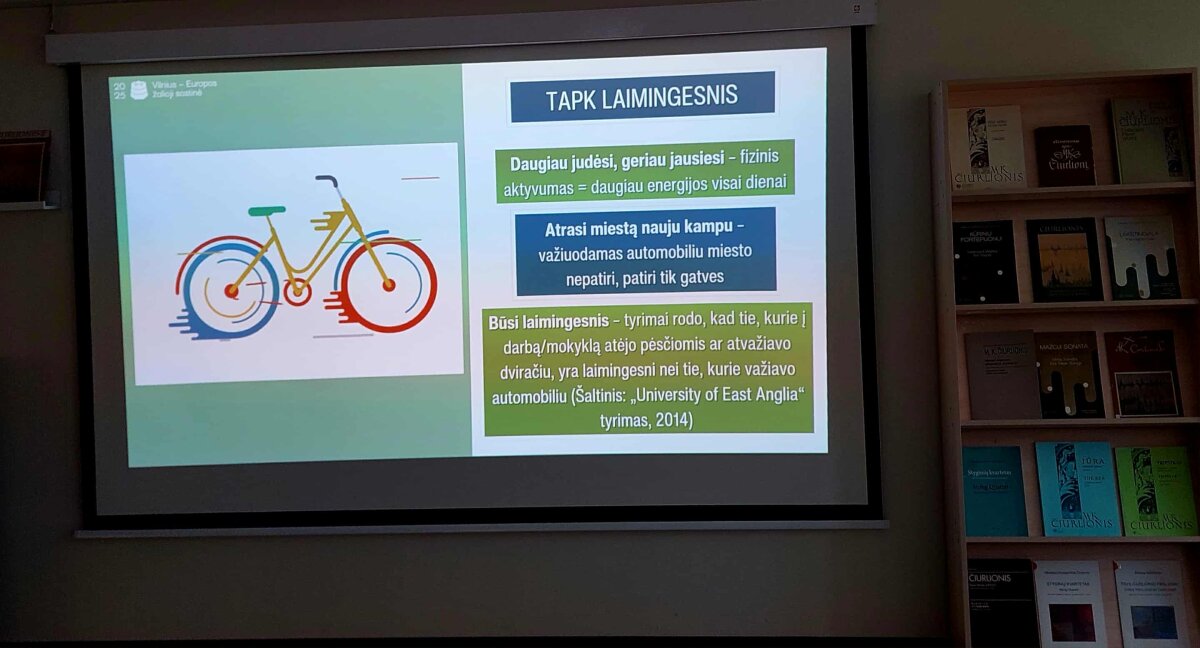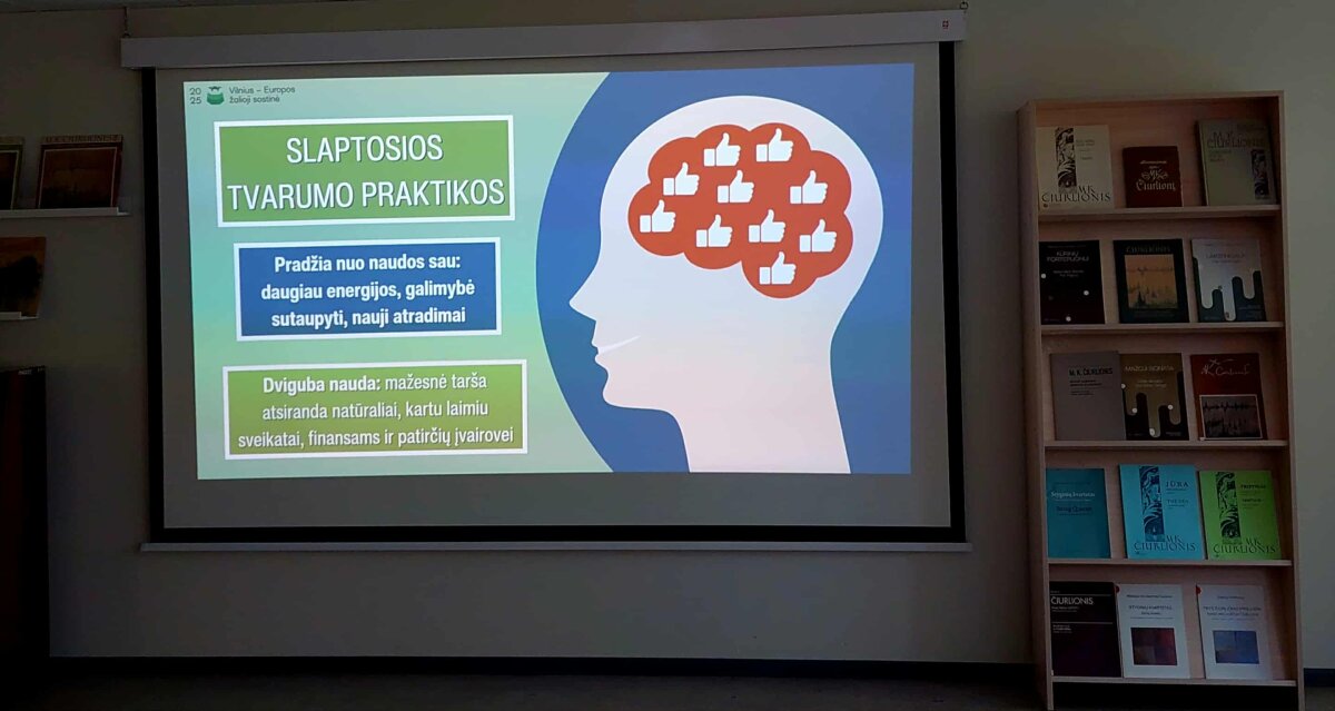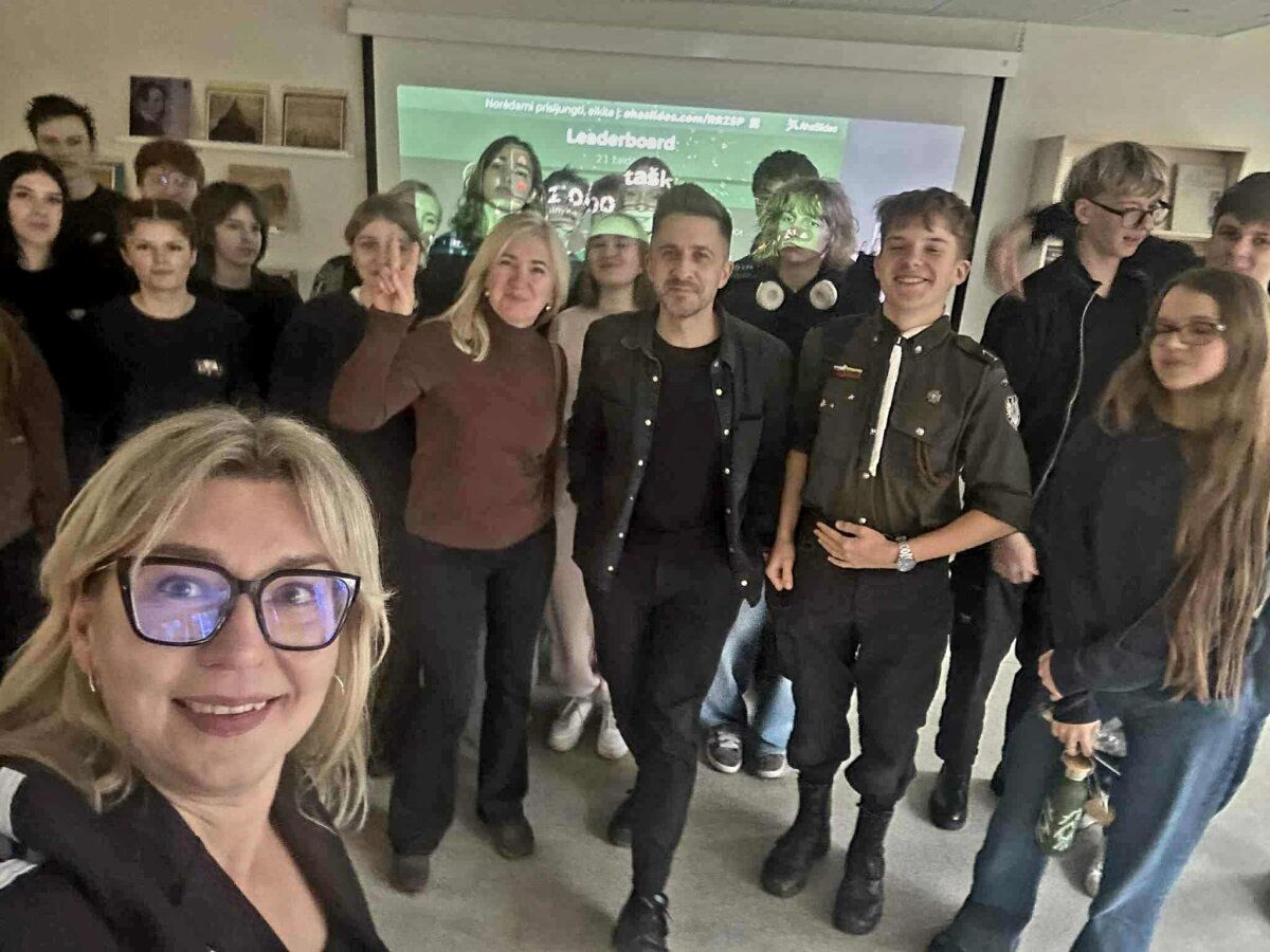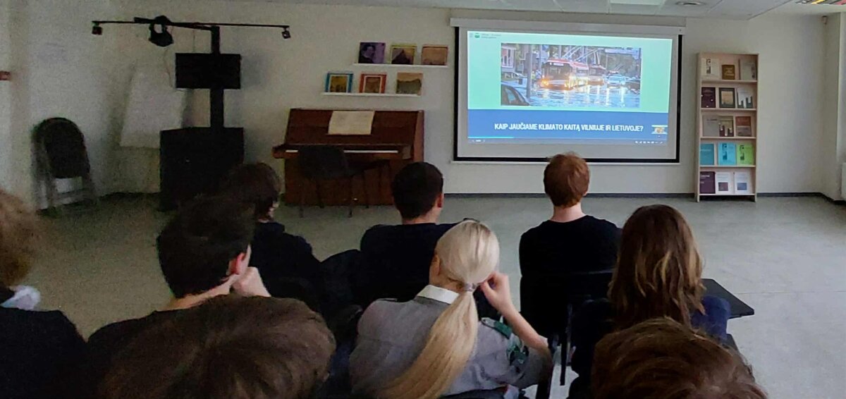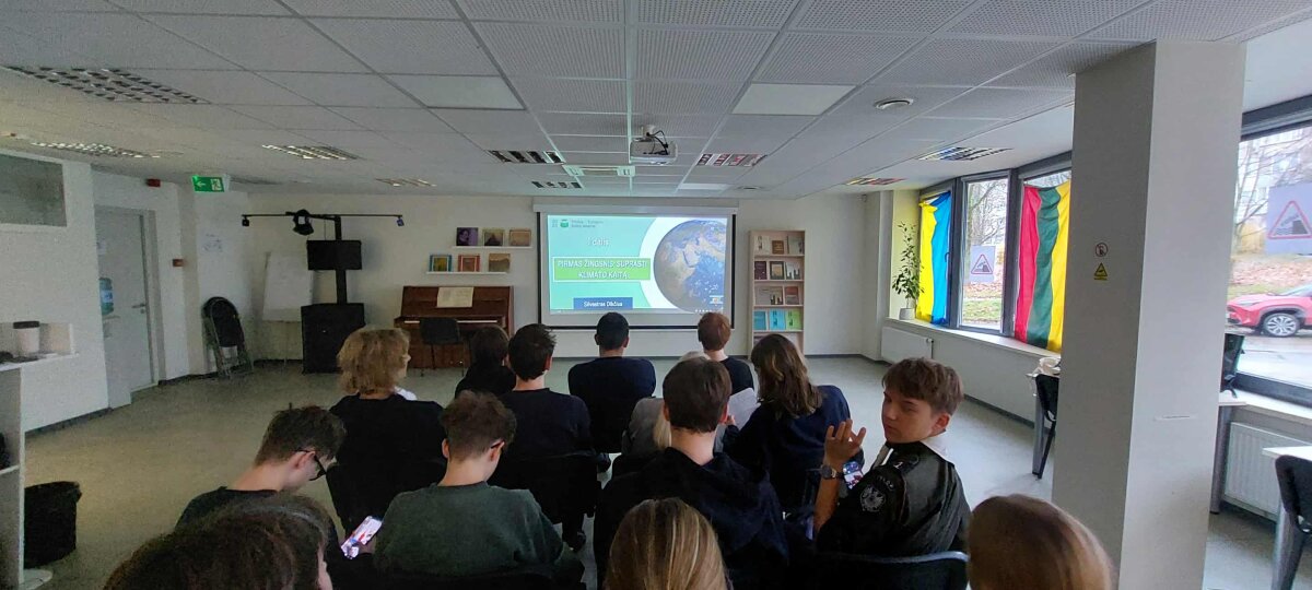 Lapkričio 11 dieną 10a klasės mokiniai dalyvavo edukaciniame renginyje „Klimato pamokos – Žaliosios sostinės 9–10 kl. mokiniams“, kurį organizavo iniciatyva „Vilnius – Europos žalioji sostinė 2025“. Renginyje mokiniai buvo supažindinti su klimato kaitos reiškiniais bei tvaraus gyvenimo būdo principais. Pamokų ciklas buvo suskirstytas į dvi dalis. Pirmojoje pamokoje mokiniai sužinojo, kas yra klimato kaita, kodėl ji vyksta ir kaip ji keičia mūsų kasdienį gyvenimą Lietuvoje ir pasaulyje. Diskusijų metu buvo aptarta, kokią įtaką žmogaus veikla daro aplinkai, ir kokių pokyčių galime tikėtis ateityje, jei nesiimsime atsakingų sprendimų. Antrojoje pamokoje akcentuotos tvarumo gudrybės, padedančios gyventi žaliai, atsakingai ir įdomiai. Mokiniai atliko praktines užduotis, dalijosi savo idėjomis, kaip kasdienybėje mažinti taršą, taupyti energiją ir vandenį. Renginio pabaigoje vyko linksmas protmūšis, kuriame mokiniai galėjo pasitikrinti įgytas žinias apie klimato kaitą ir tvarumą. Aktyviausi dalyviai buvo apdovanoti simboliniais prizais. Šios „Klimato pamokos“ ne tik praplėtė mokinių žinias, bet ir paskatino mąstyti atsakingiau apie savo veiksmus aplinkos atžvilgiu. Tai buvo puiki proga sužinoti, kaip kiekvienas iš mūsų gali prisidėti prie žalesnės ir tvaresnės ateities kūrimo. Nuoširdžiai dėkojame organizatoriams – iniciatyvai „Vilnius – Europos žalioji sostinė 2025“ – už įdomias pamokas, kūrybišką programą ir galimybę mūsų mokiniams gilinti žinias apie klimatą bei tvarumą. Taip pat dėkojame Silvestrui Dikčiui, keliautojui ir klimatologui, kuris žingsnis po žingsnio matuoja pasaulį, dalijosi savo patirtimi ir įkvėpė mokinius domėtis klimato mokslu bei aktyviai prisidėti prie tvarios ateities kūrimo.