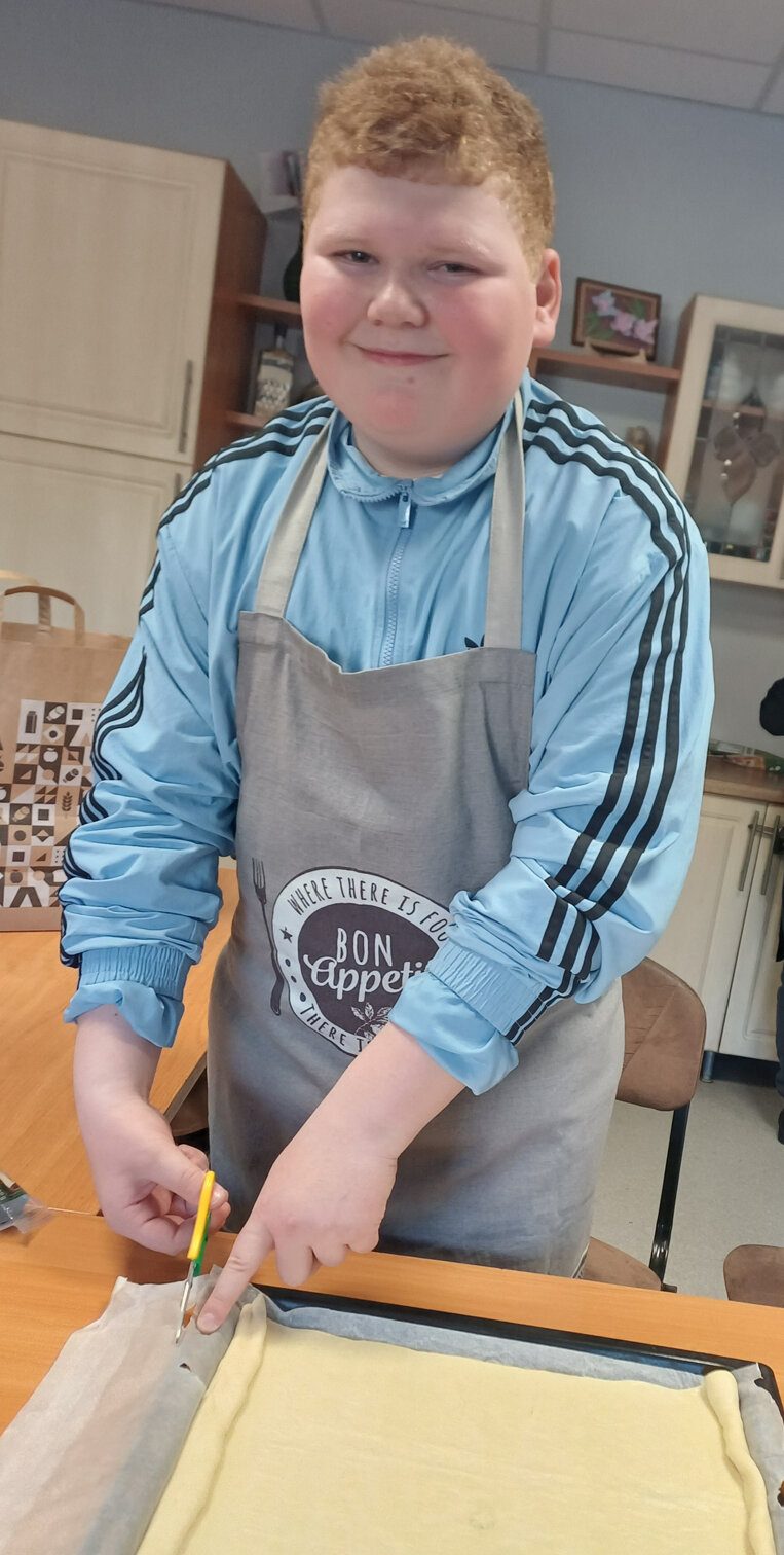 Pamokos metu visi dirbo su dideliu įkvėpimu, bendradarbiavo tarpusavyje, mokėsi saugiai naudotis virtuvės įrankiais ir įgijo praktinių įgūdžių gamindami skanų patiekalą.
