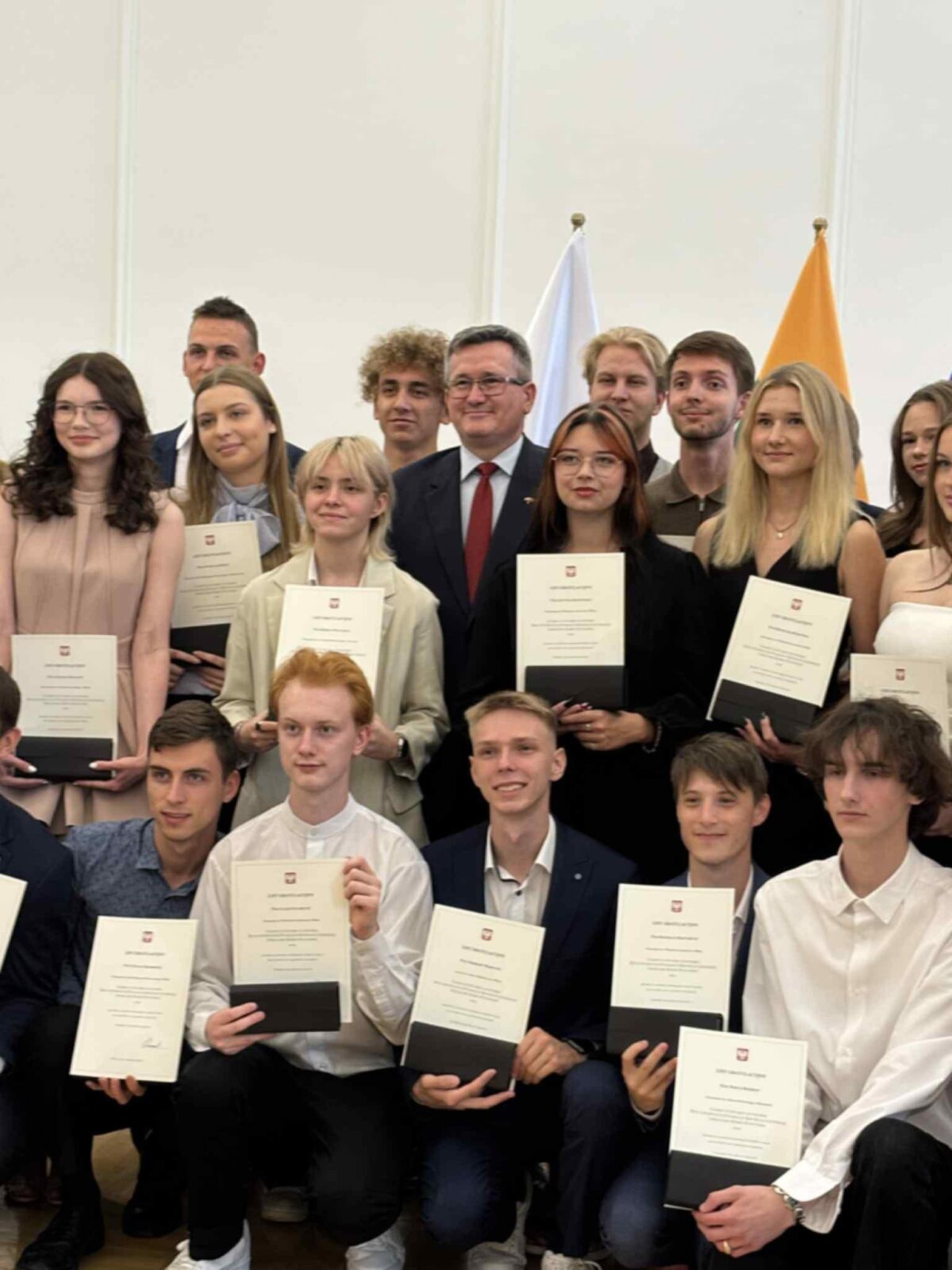 Rugpjūčio 12 d. Lenkijos Respublikos laikinasis reikalų patikėtinis Grzegorz Marek Poznański susitiko su šių metų Lietuvos mokyklų, kuriose mokoma lenkų kalba, abiturientais. Džiaugiamės, kad tarp apdovanotųjų buvo net aštuoni mūsų gimnazijos abiturientai, pelnę šimtukus iš brandos egzaminų. Sveikiname!