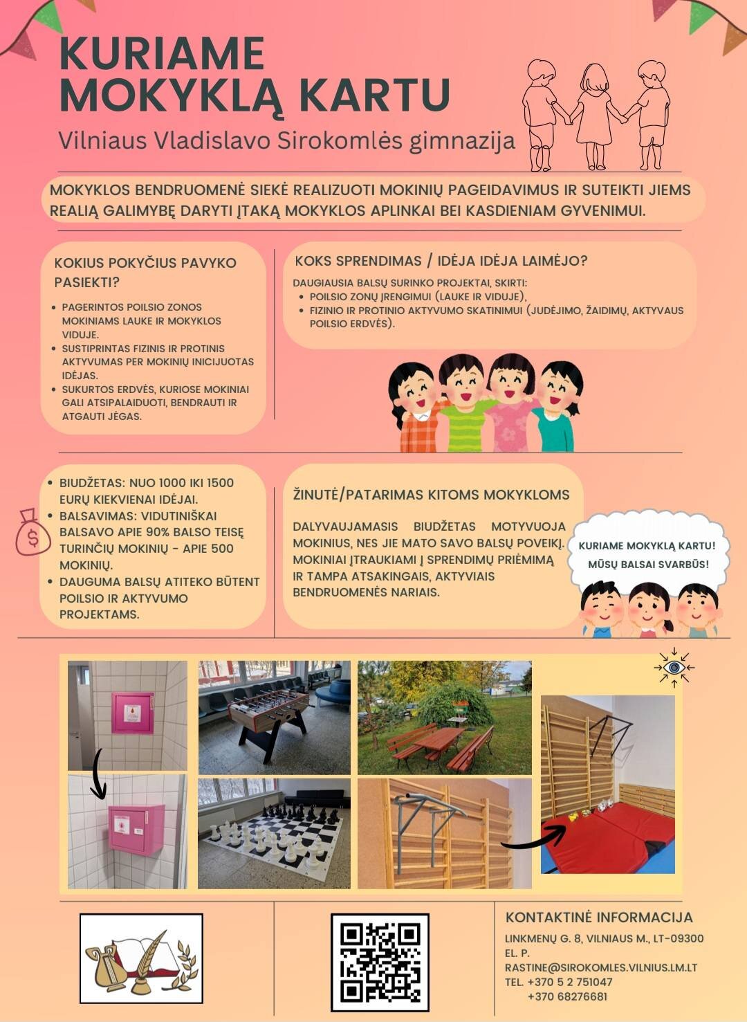 galimybė mokiniams realiai prisidėti prie savo mokyklos kūrimo.