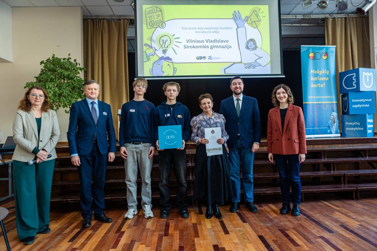 EDU Vilnius ir „Transparency International“ Lietuvos skyriaus atstovai, dalyvaujamojo biudžeto programos organizatoriai, įvertino mūsų mokyklos mokinių iniciatyvas ir skyrė nominaciją „Tvariausia Dalyvaujamojo biudžeto iniciatyvos idėja“. Vilniaus Vladislavo Sirokomlės gimnazijos bendruomenės vardu nuoširdžiai dėkojame už šį reikšmingą įvertinimą. Jis mums – didelė garbė ir paskata toliau kurti mokyklą, kurioje mokinių idėjos tampa realiais pokyčiais.
