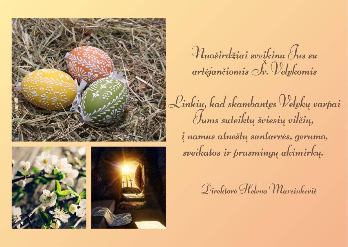 Gimnazijos direktorės sveikinimas šv. Velykų proga