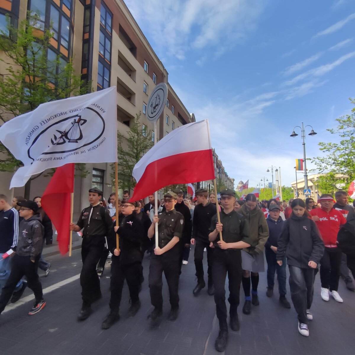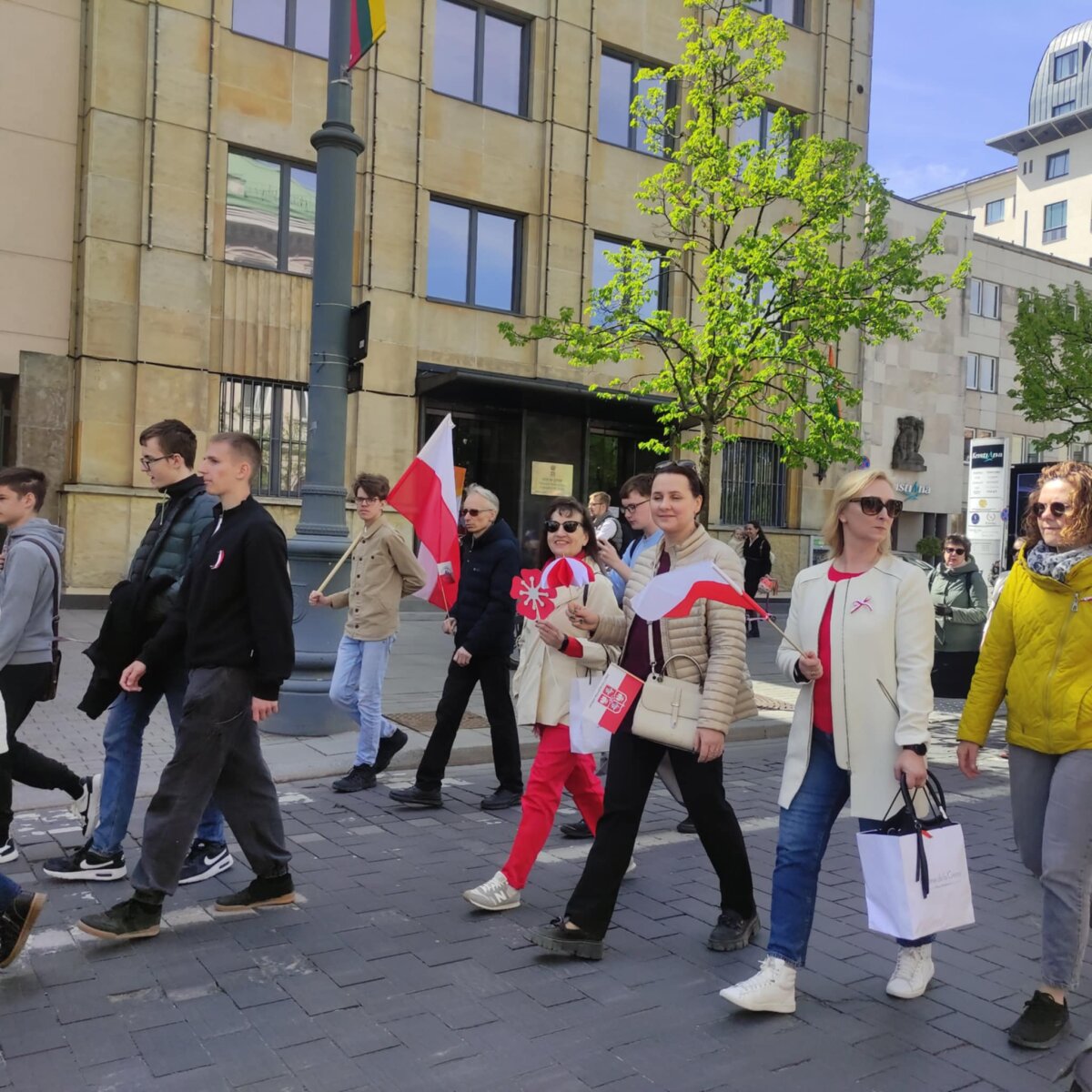Gegužės 3 d. mūsų gimnazijos delegacija pagerbė Gegužės 3-iosios Konstitucijos metines, dalyvaudama iškilmėse Rasų kapinėse. Vėliau visa mokyklos bendruomenė išdidžiai žygiavo Lenkų eisenoje, švęsdama Pasaulinę lenkų diasporos dieną bei 234-ąsias Konstitucijos metines. Dėkojame visiems už gražų vienybės ir tautinės tapatybės liudijimą.