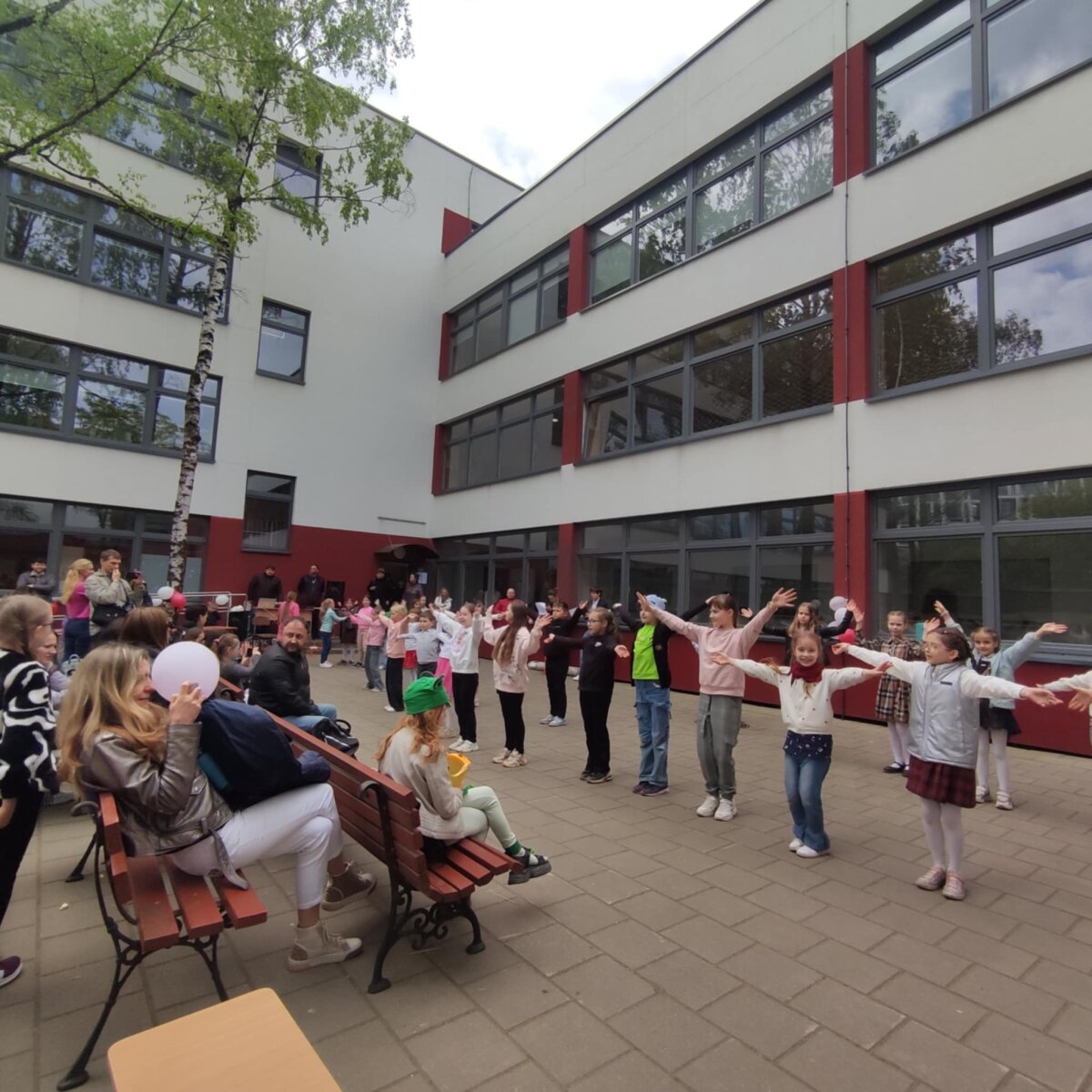 Sporto salėje vyko šeimų tinklinio turnyras, o mokyklos kieme laukė daugybė pramogų: žaidimai, loterijos, skanėstai ir tėvų paruošti kepiniai. Tai buvo tikra bendrystės, džiaugsmo ir gimnazijos bendruomenės susitelkimo šventė.