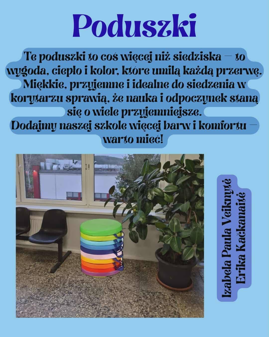 Tikslas: Sukurti jaukią, patogią ir tvarią erdvę mokykloje poilsiui ir bendravimui.