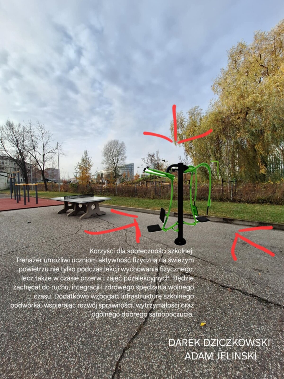 Tikslas: Įrengti treniruoklį mokyklos teritorijoje, kad mokiniai galėtų sportuoti gryname ore.