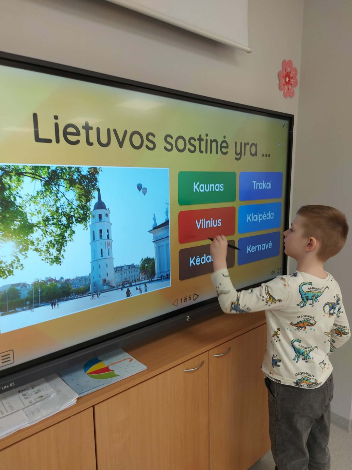Priešmokyklinių grupių vaikai per lietuvių kalbą - Kovo 11-osios proga, žiūrėjo menininko A. Kriščiūno ir režisieriaus D. Ulvydo kūrinį (filmą 3D) ,,Aš Lietuva''. Keliavo erdvėje ir laiku – virtualioje realybėje. Pamatė Lietuvos gamtą: Baltijos jūrą, ežerus, upes ir architektūrą: bažnyčias, pilis, piliakalnius. Klausė taisyklingos lietuvių kalbos. Po filmo pasakojo ir piešė, kas labiausiai patiko. Kadangi vaizdus matė iš paukščio skrydžio, tai pagamino savo trispalvius paukščius. Žinių apie Lietuvą įtvirtinimui, dirbo Wordwall platformoje.