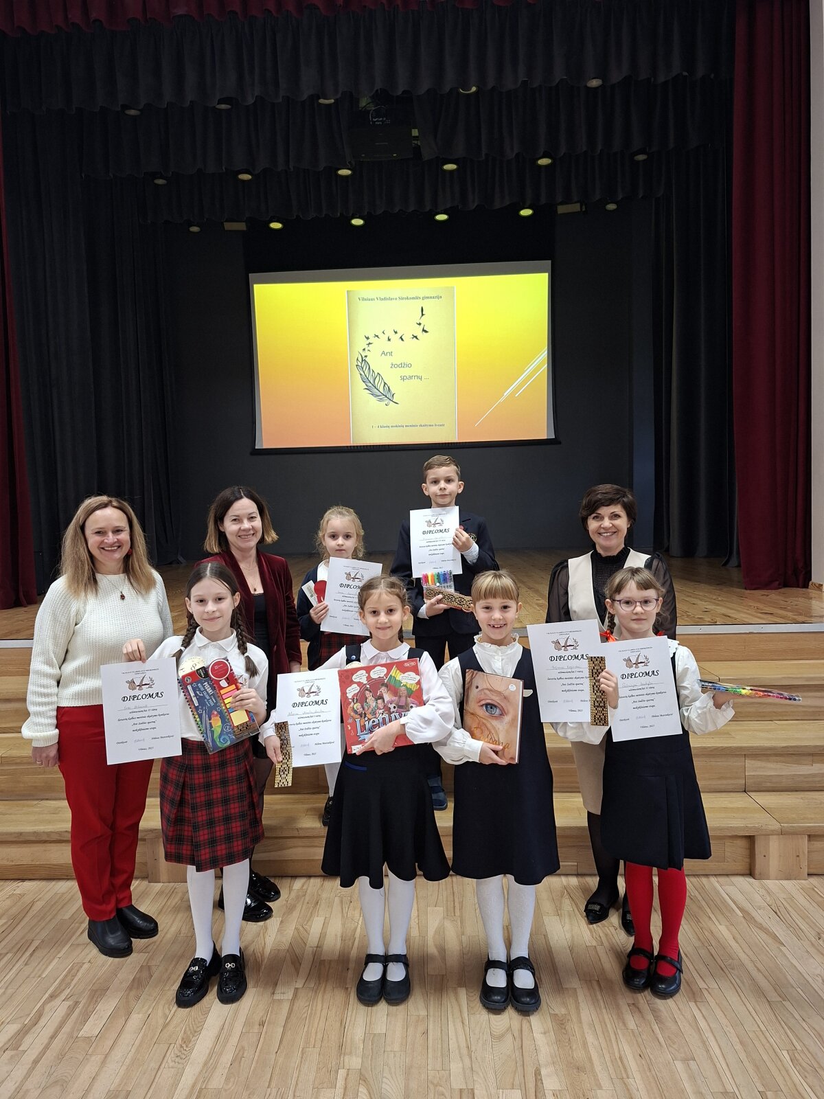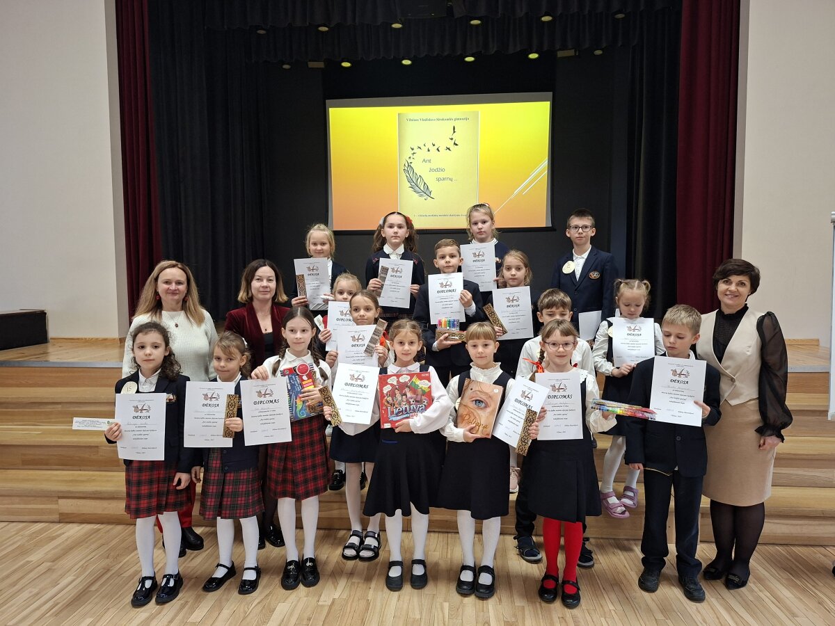 Lapkričio 11 dieną mūsų gimnazijoje vyko tradicinis pradinių klasių mokinių meninio skaitymo konkursas „Ant žodžių sparnų“. Šiemet jame dalyvavo 17 mokinių, kurie deklamavo lietuvių autorių kūrinius.