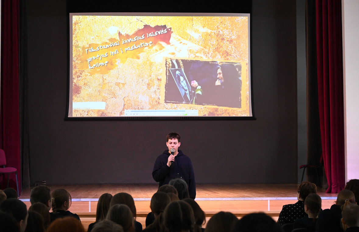 Mūsų mokykloje ši diena paminėta jautria ir prasminga programa. Istorijos mokytojai Marina Taraškevič ir Viktor Lovčik, muzikos mokytoja Renata Juzokienė, lietuvių kalbos mokytoja Ina Staikūnienė kartu su 8–9 klasių mokiniais parengė minėjimą 6–9 klasių bendruomenei. Dailės mokytoja Jolanta Snežko sukūrė informacinį stendą, primenantį Sausio 13-osios įvykius ir jų reikšmę. 8 valandą ryto mokyklos hole buvo uždegtos atminimo žvakės – tylos ir pagarbos simbolis žuvusiesiems. 8.10 val. mokiniai žiūrėjo dokumentinį filmą apie 1991 m. sausio įvykius, padėjusį geriau suprasti tų dienų dramą ir žmonių pasiaukojimą.