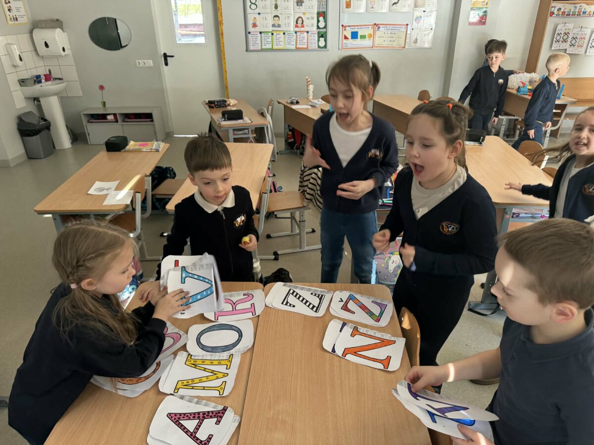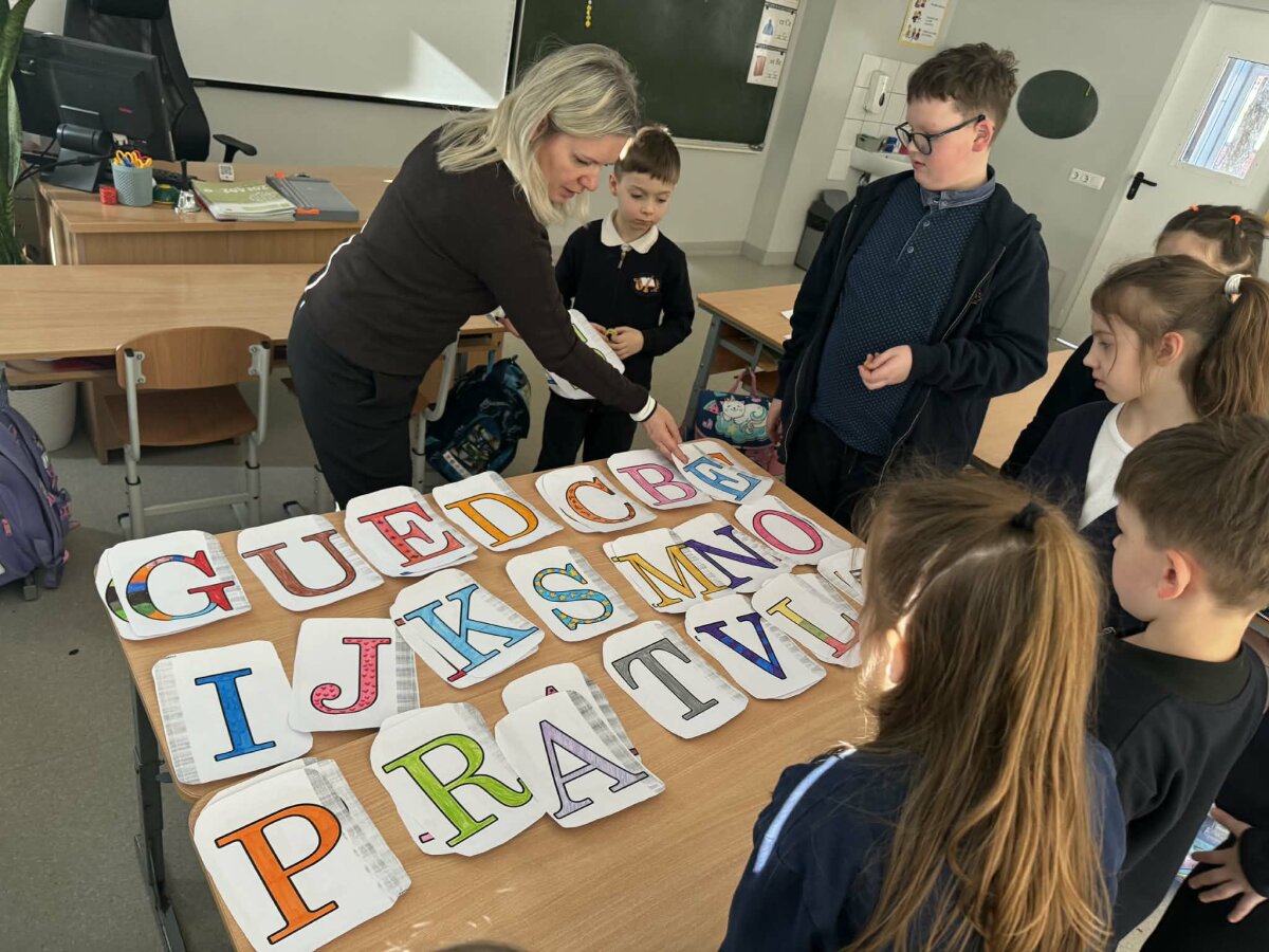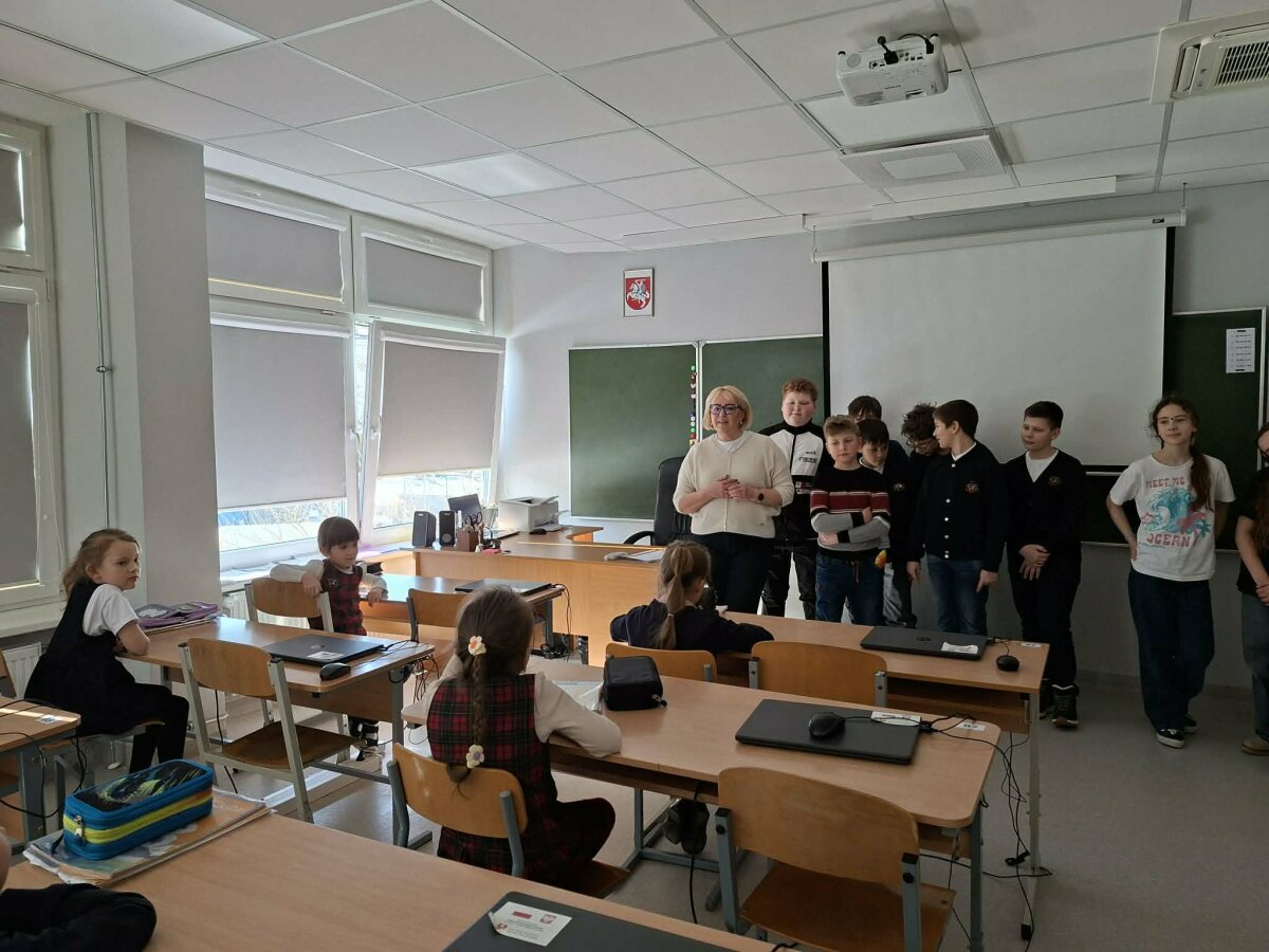 Lietuvių kalbos savaitės metu gimnazijoje vyko integruota pamoka „Raidžių draugystė“, kurios metu 5a klasės mokiniai, lydimi mokytojų Lilijos Aleksandrovič ir Vidos Navelskienės, aplankė 1b klasės mokinius. Šios pamokos tikslas – skatinti pirmokų skaitymo ir kalbėjimo įgūdžius, ugdyti kūrybiškumą bei stiprinti bendradarbiavimą tarp skirtingų klasių mokinių.