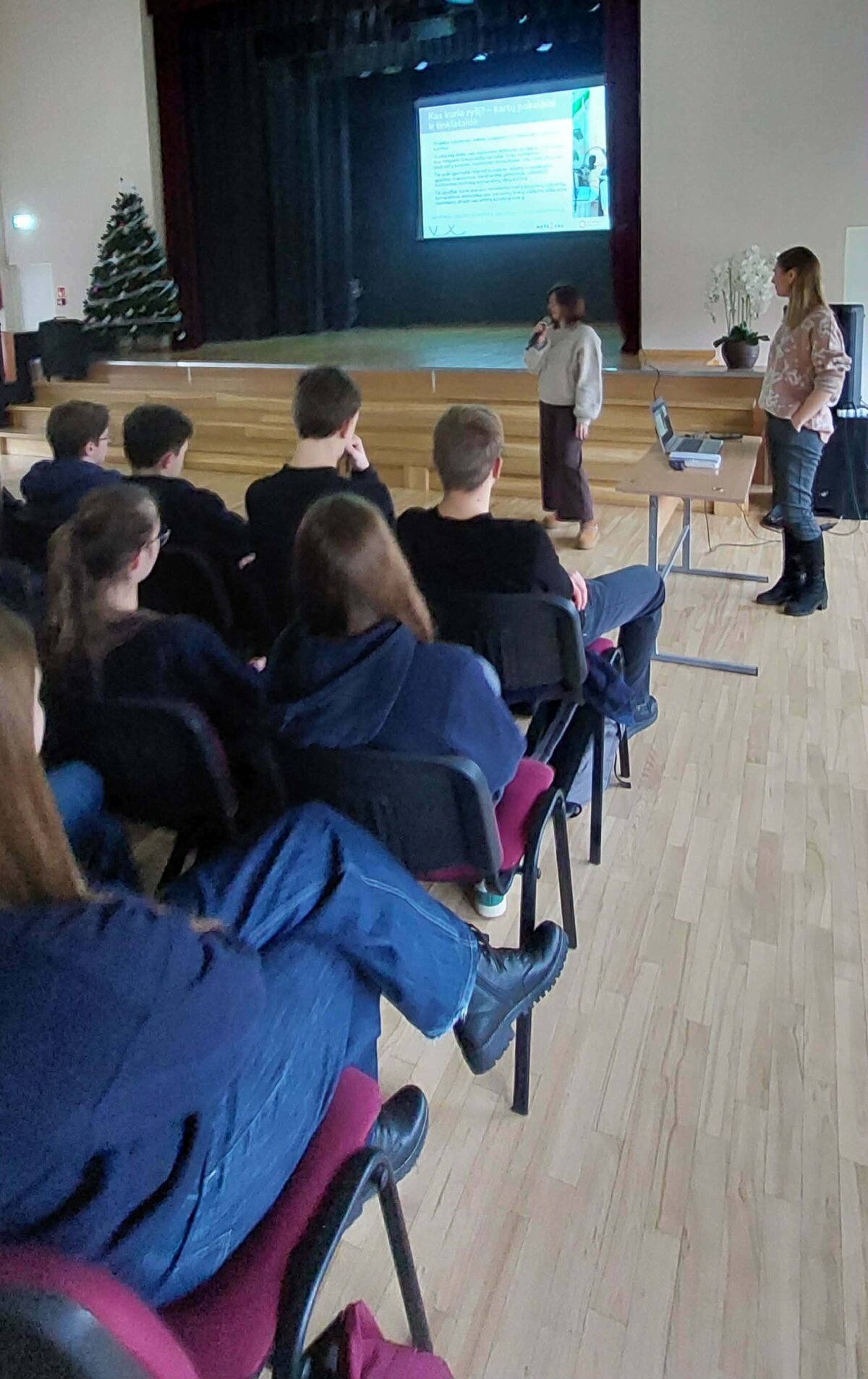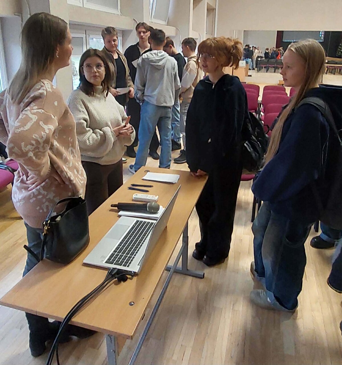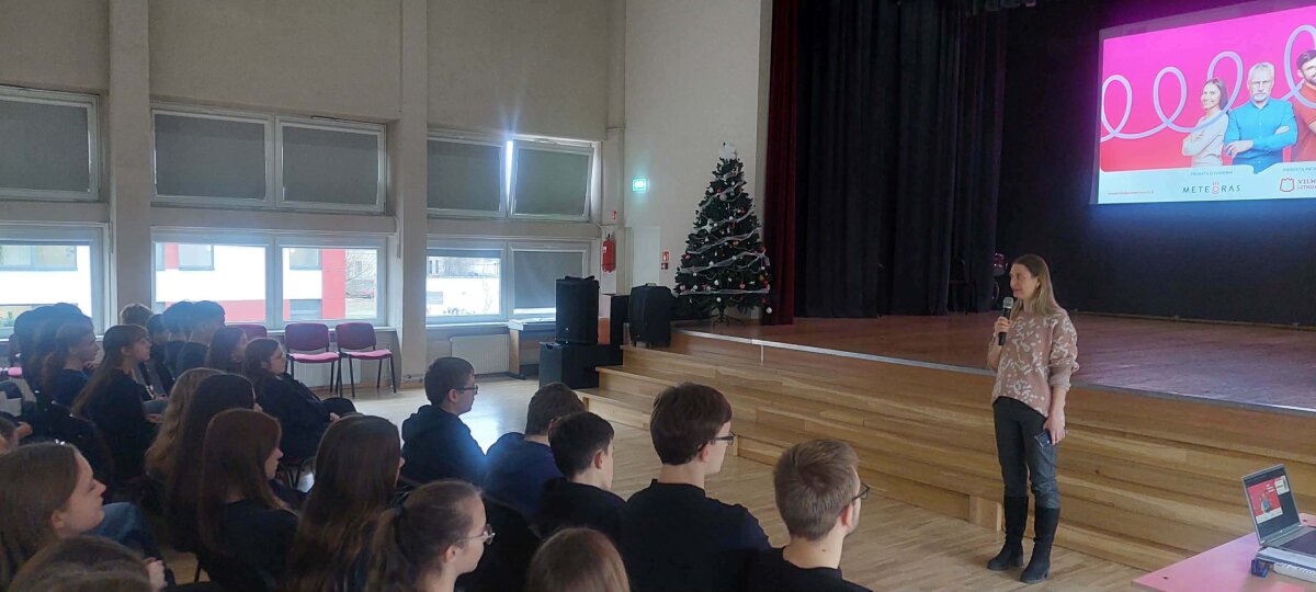 Gruodžio 8 dieną I–IV gimnazijos klasių mokiniai dalyvavo įkvepiančiame susitikime, skirtame pristatyti bendradarbiavimo projektą „Susigirdim“, kurį įgyvendina Vilniaus miesto savivaldybė ir Vaikų ir jaunimo klubas „Meteoras“. Šis klubas jau daugelį metų remia jaunų žmonių augimą, jų pomėgius ir socialinius įgūdžius, kurdamas erdvę kūrybiškam bendradarbiavimui ir saviraiškai. Pristatymo metu mokiniai susipažino su trimis projekto teminėmis kryptimis: muzika, teatru ir podkastais. Taip pat buvo paaiškinta, kaip vyksta užsiėmimai, kuriuos veda „Meteoraso“ specialistai: psichologai, dailės terapeutai, soc. terapeutai ir kūrybinių veiklų instruktoriai. Mokiniai sužinojo, kad dalyvavimas pusmetį trunkančioje savanorystėje suteikia galimybę gauti papildomų balų stojant į aukštąsias mokyklas, atlikti socialines valandas ir lavinti tarpasmeninius bei socialinės atsakomybės įgūdžius. Susitikimas vyko atviroje ir smalsioje atmosferoje. Mokiniai aktyviai įsitraukė į pokalbį, pateikė klausimus ir dalijosi mintimis apie projektą. Akcentuota, kad bendradarbiavimas su klubu „Meteoras“ yra išskirtinė galimybė įsilieti į bendradarbiavimo ritmą tarp kartų ir atrasti, kiek daug galima pasiekti veikiant kartu. Dėkojame už iniciatyvą ir įkvepiantį susitikimą Agatai Andruškevič — mūsų gimnazijos absolventei ir Vaikų bei jaunimo klubo „Meteoras“ atstovei