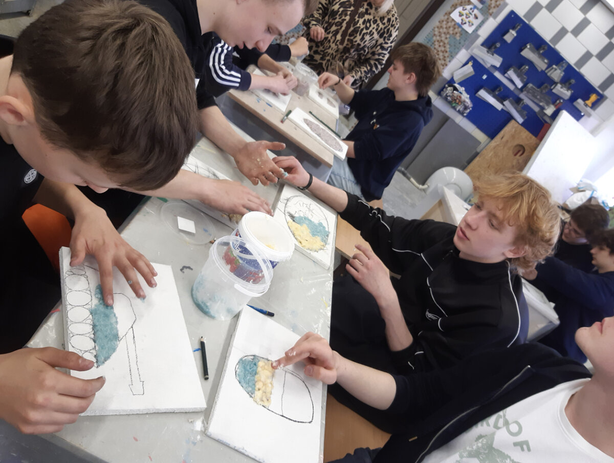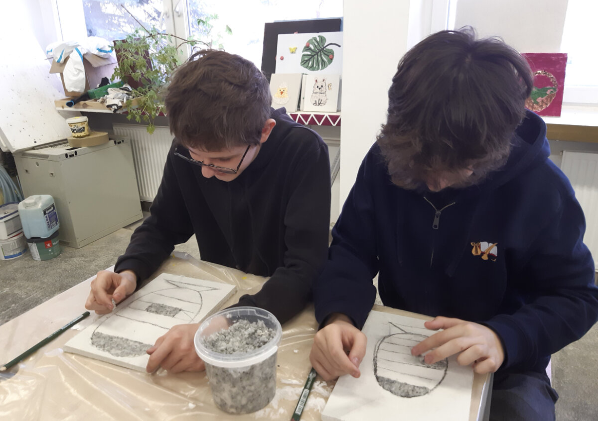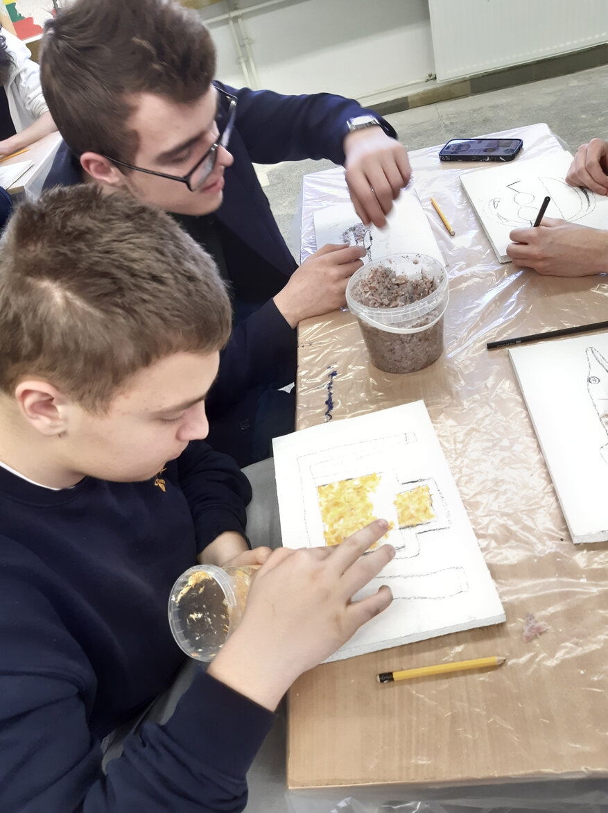 Kovo 23 dieną 8-10-ų kl. mokinių grupė kartu su technologijų mokytoju lankėsi Vilniaus statybininkų rengimo centre (Viršuliškių skyrius). Mokiniai dalyvavo užsiėmime „Paviršiaus dekoravimas“ iš projekto „Vilnius yra mokykla“. Užsiėmimo metu mokiniai turėjo galimybę praktiškai išbandyti apdailininko profesiją.