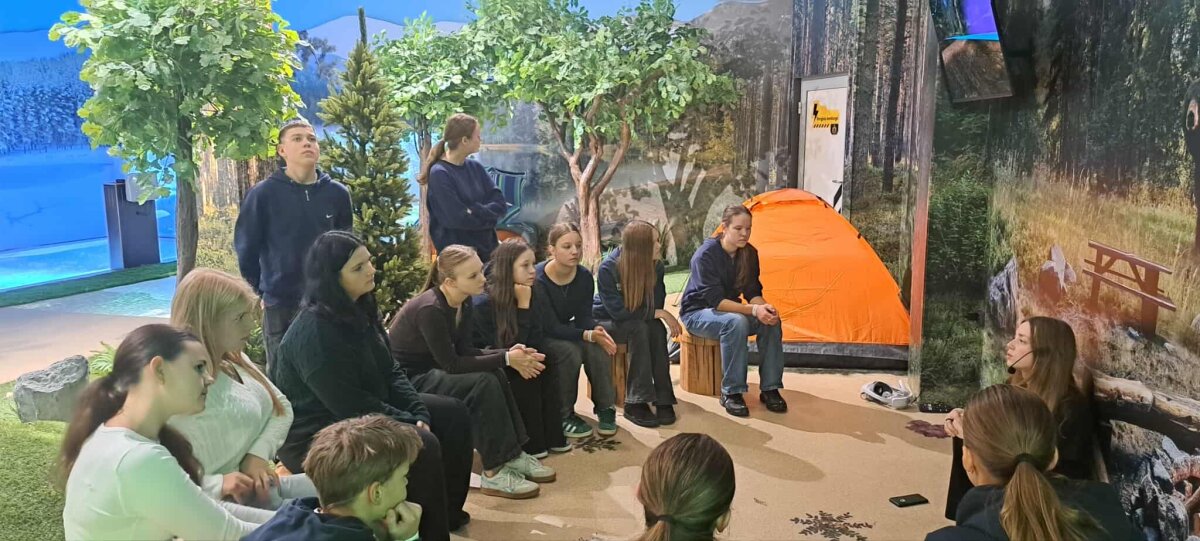 16 października uczniowie 8b klasy wraz z wychowawczynią Iwoną Janczewską odwiedzili wileńskie centrum edukacyjne „Park Niebezpieczeństwa”. To nowoczesna i interaktywna przestrzeń, w której uczniowie w praktyce uczą się, jak zachowywać się w niebezpiecznych i nieoczekiwanych sytuacjach.
