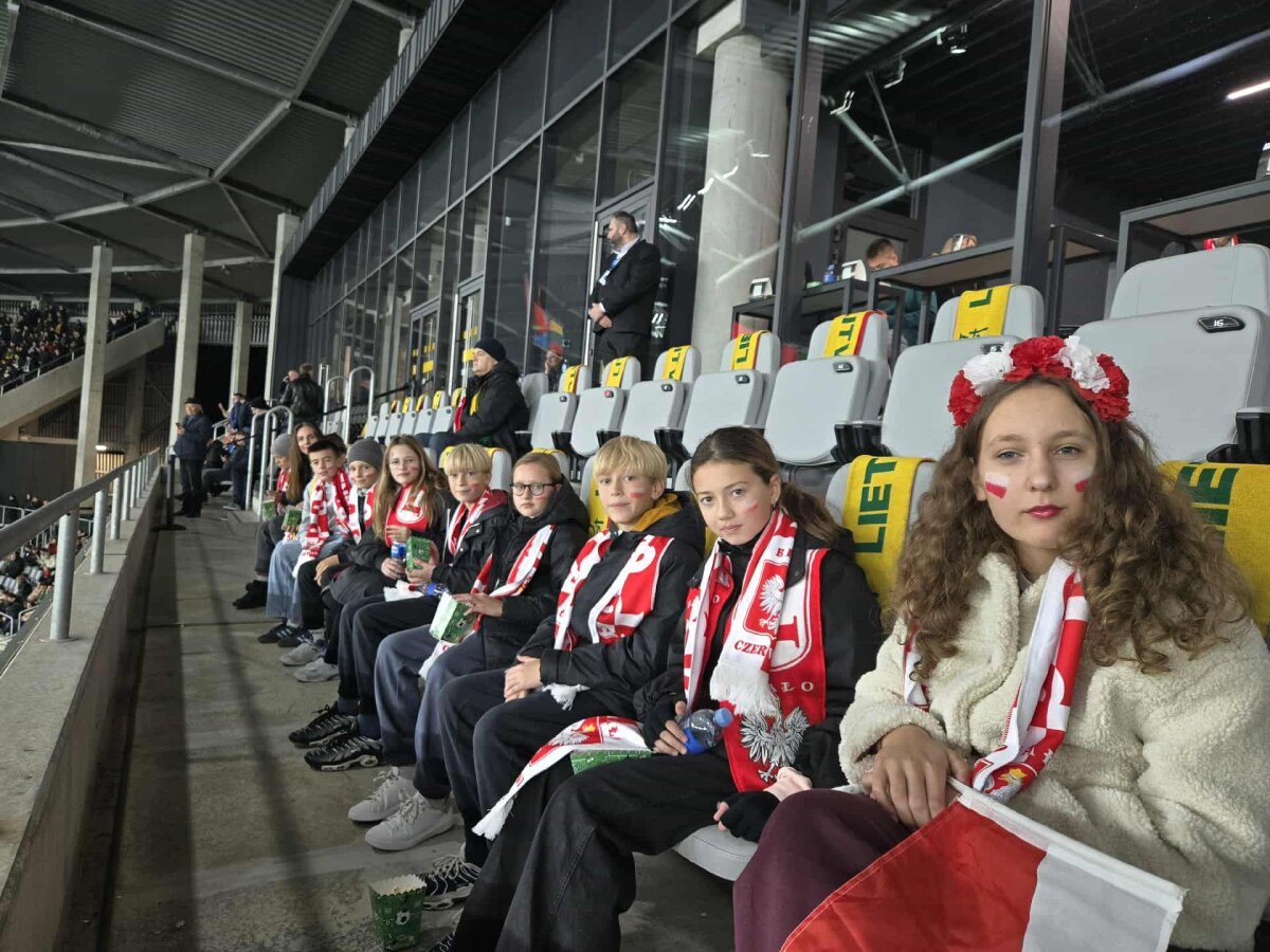13 października 10-osobowa grupa uczniów klas 5–7 naszego gimnazjum, wraz z nauczycielką wychowania fizycznego Wiktorią Magalińską i pedagogiem specjalnym Martą Sinkiewicz, miała niepowtarzalną okazję obejrzeć na żywo mecz piłki nożnej w Kownie, na Stadionie im. Dariusa i Girėnasa, gdzie spotkały się reprezentacje Litwy i Polski! To było niesamowite przeżycie – oglądać sport na tak wysokim poziomie! Uczniowie byli pod wrażeniem i szczęśliwi, widząc tak wielu wybitnych sportowców, a zwłaszcza światowej sławy Roberta Lewandowskiego! Dziękujemy Ambasadzie RP za tę możliwość, a premierowi Donaldowi Tuskowi - za prezenty dla uczniów!