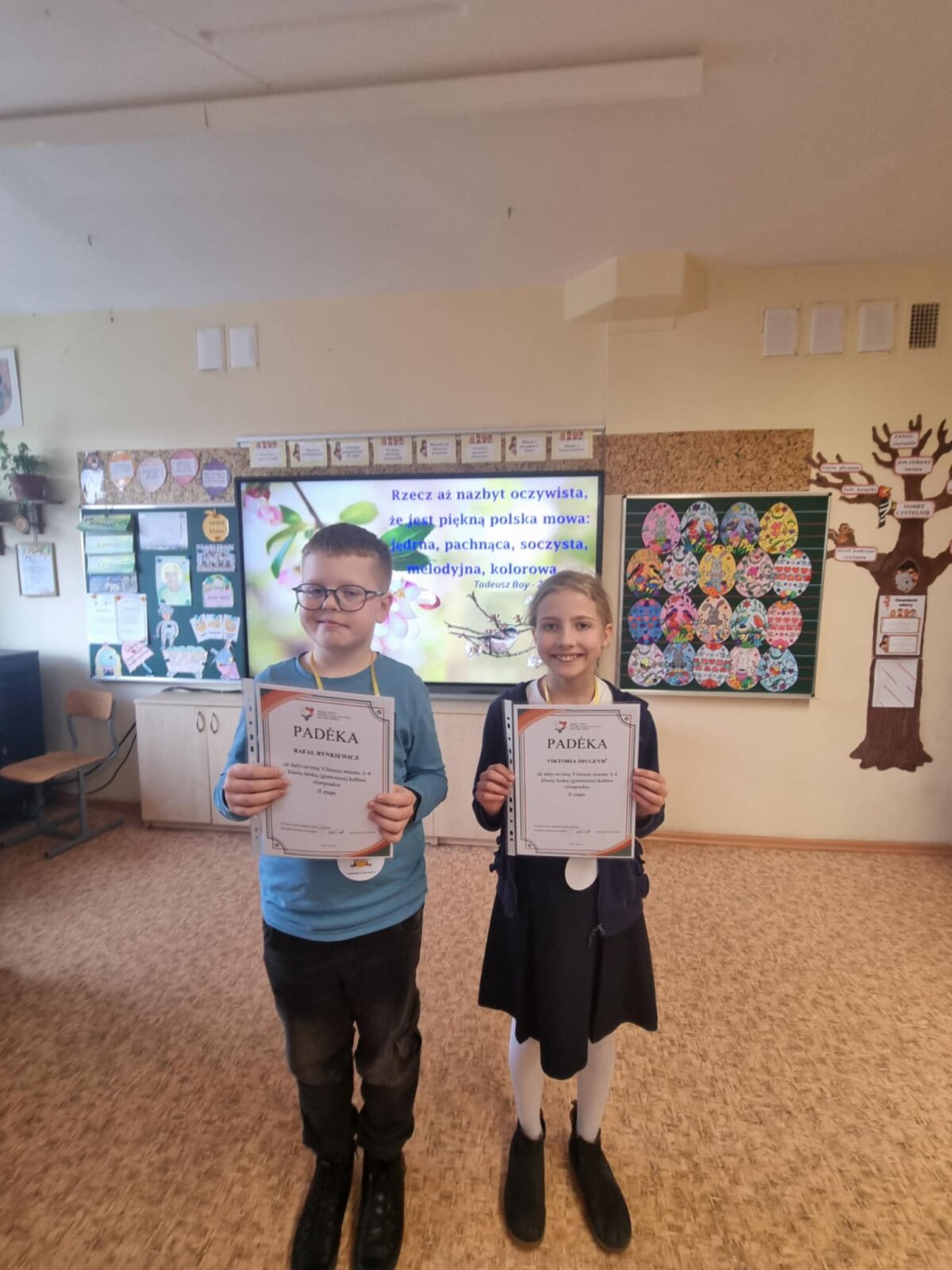Z dumą informujemy, że uczennica Wiktoria Diugewicz zdobyła I miejsce wśród uczniów klas trzecich, natomiast Rafał Rynkiewicz zajął II miejsce wśród uczniów klas czwartych.