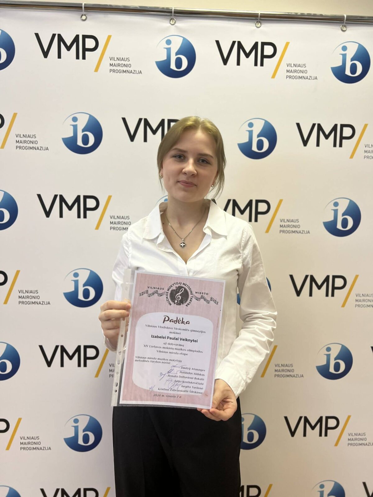 Z ogromną dumą informujemy, że Izabela Paula Veiknytė, uczennica klasy 9a naszego gimnazjum, 7 lutego podczas XIV Litewskiej Olimpiady Muzycznej Uczniów w Wilnie zajęła II miejsce oraz otrzymała dyplom uznania za najlepiej wykonaną pieśń.