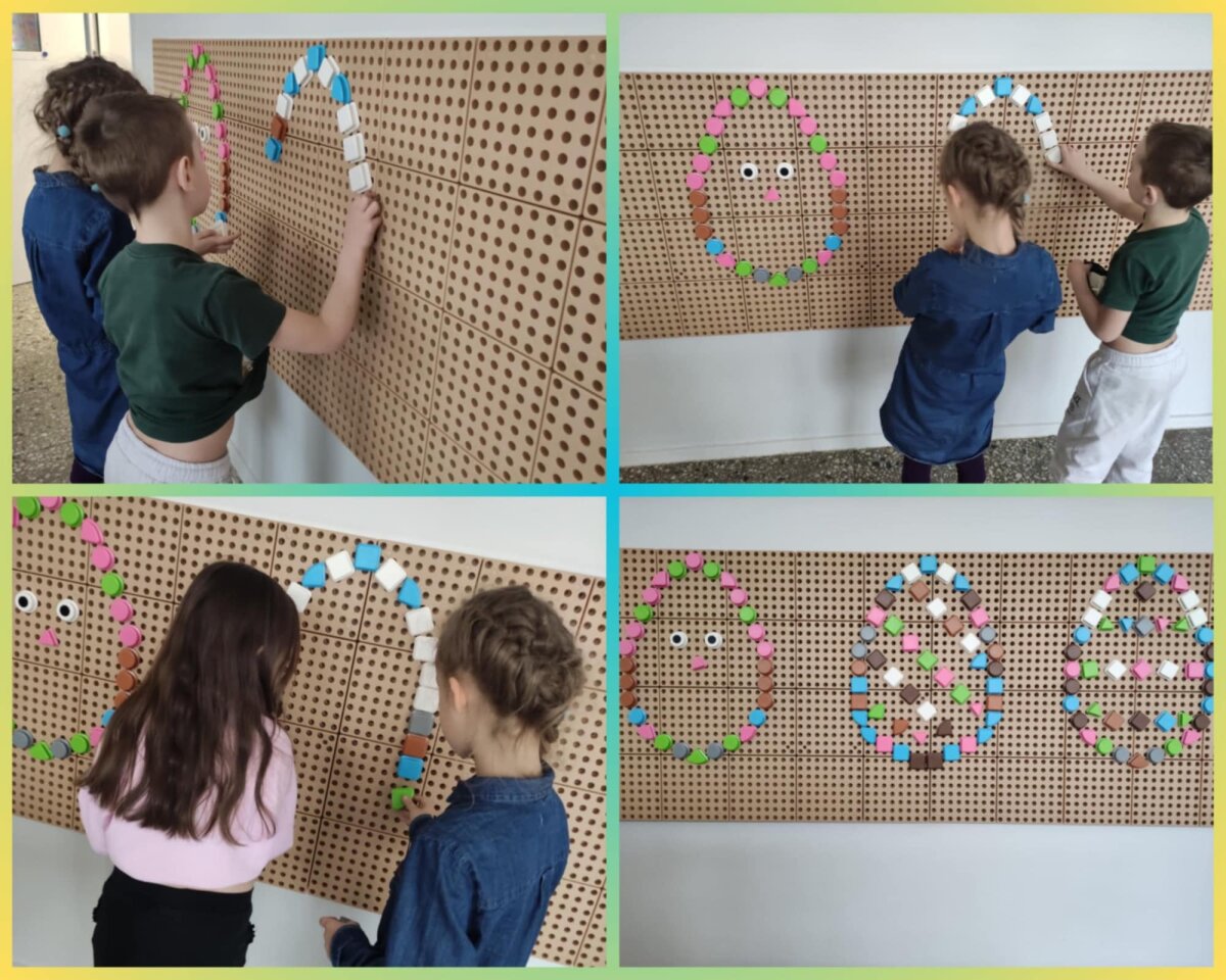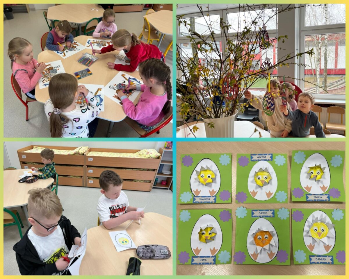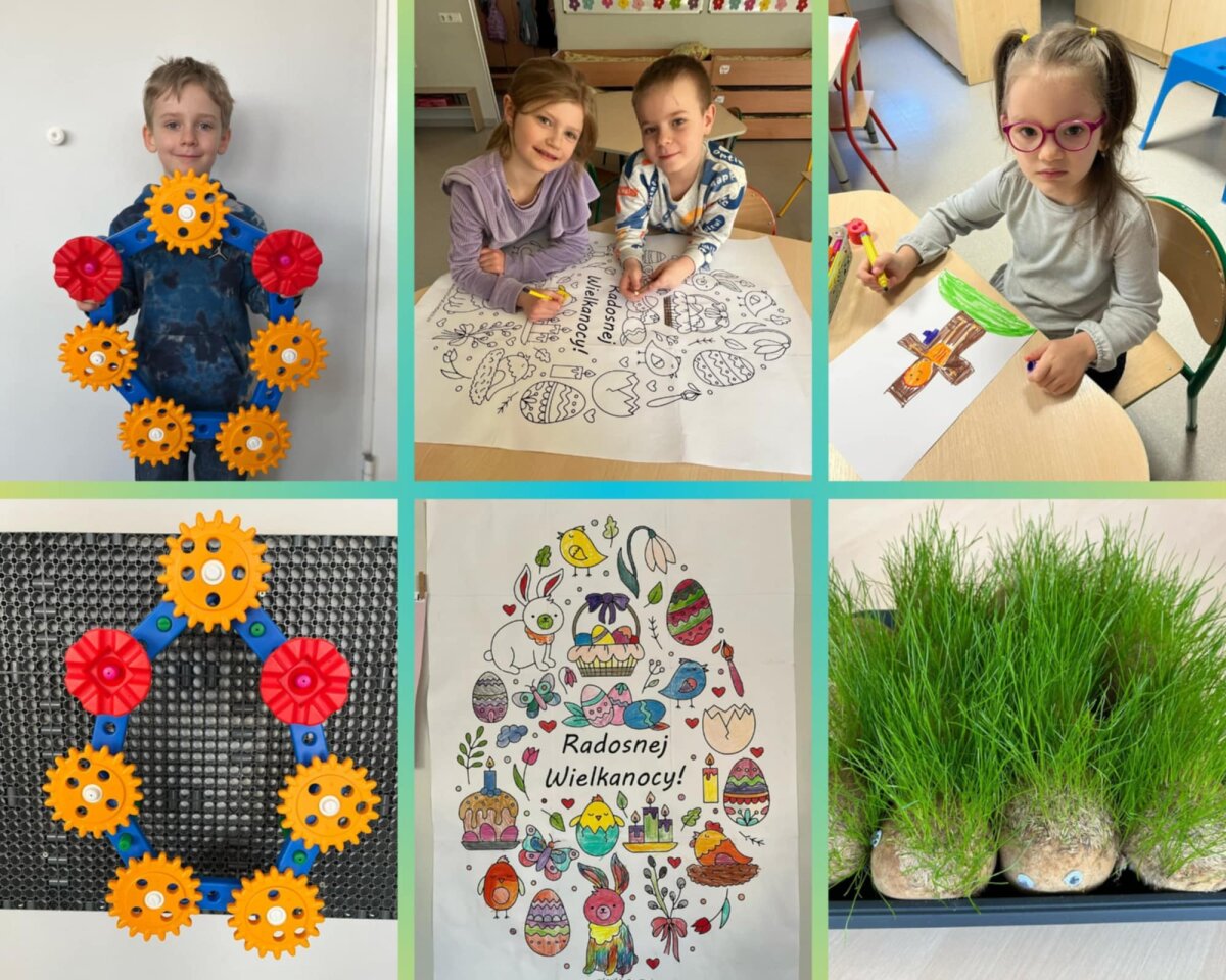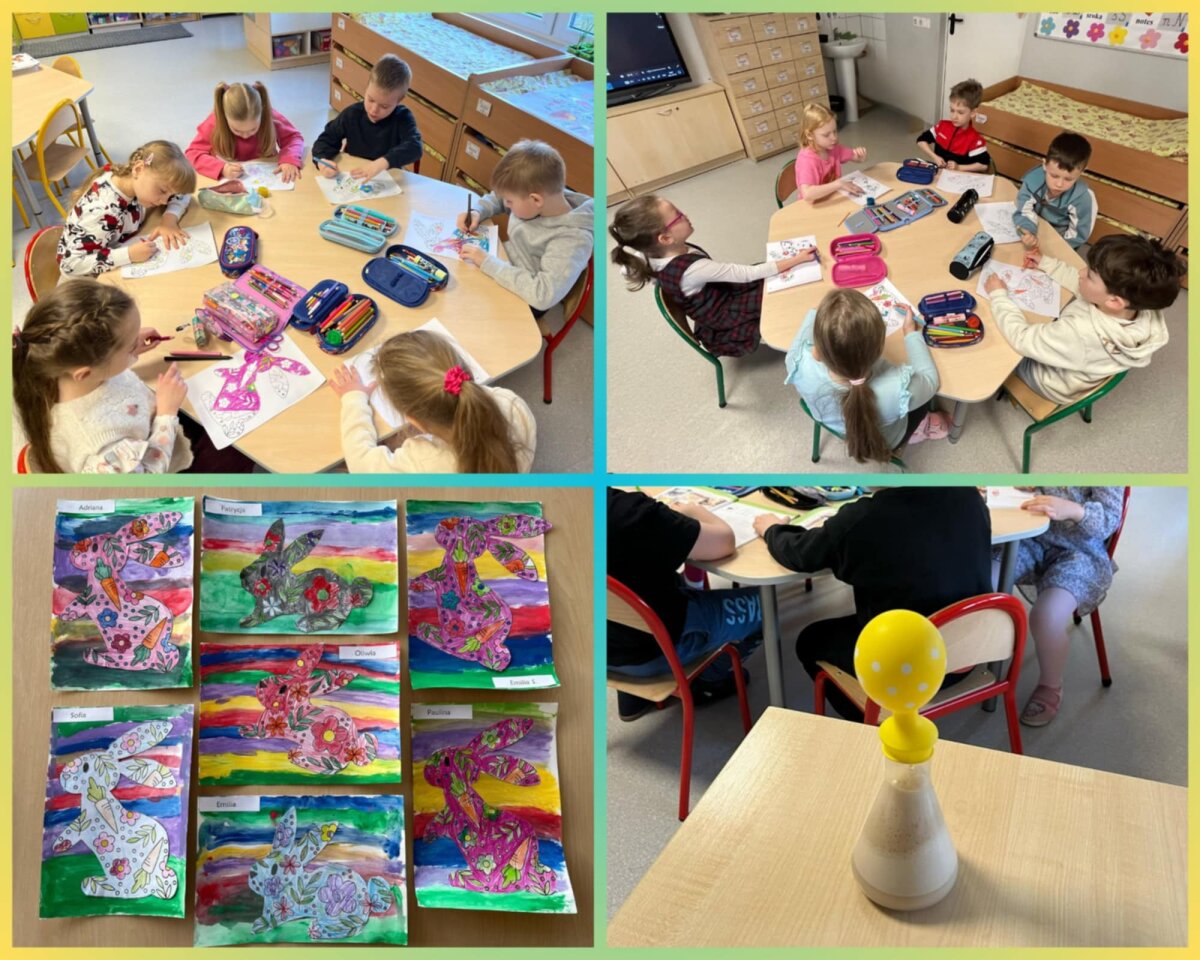 W ciągu ostatniego tygodnia w grupach przygotowawczych trwały intensywne przygotowania do Świąt Wielkanocnych. Dzieci z ogromnym zaangażowaniem malowały farbami pisanki, kolorowały oraz kleiły baranków, zajączków, tworzyły dekoracje. Szczególnym zadaniem było kolorowanie drewnianych jajek, które zawisły na wspólnie przygotowanym wielkanocnym drzewku. Nasi najmłodsi układali także jajka na tablicach edukacyjnych, ćwicząc przy tym logiczne myślenie i sprawność manualną. Uczestniczyły w republikańskim projekcie edukacyjnym "STEAM Pisanka wielkanocna" (lit. STEAM Velykinis margutis), którego celem było zachęcenie dzieci do odkrywania, konstruowania, tworzenia zabawnych prac twórczych, poszerzania i pogłębiania wiedzy o Wielkanocy. Nie zabrakło też ciekawych doświadczeń – eksperymenty z jajkami, doświadczenie z drożdżami i balonem oraz mieszanie kolorów. W zerówce zrobiło się bardzo wiosennie, kolorowo i świątecznie. Dzięki tym aktywnościom dzieci nie tylko świetnie się bawiły, ale też uczyły się współpracy i poznawały znaczenie świąt.
