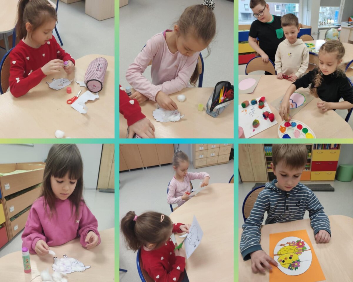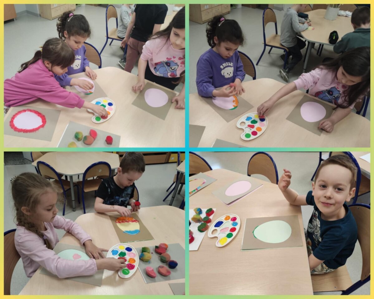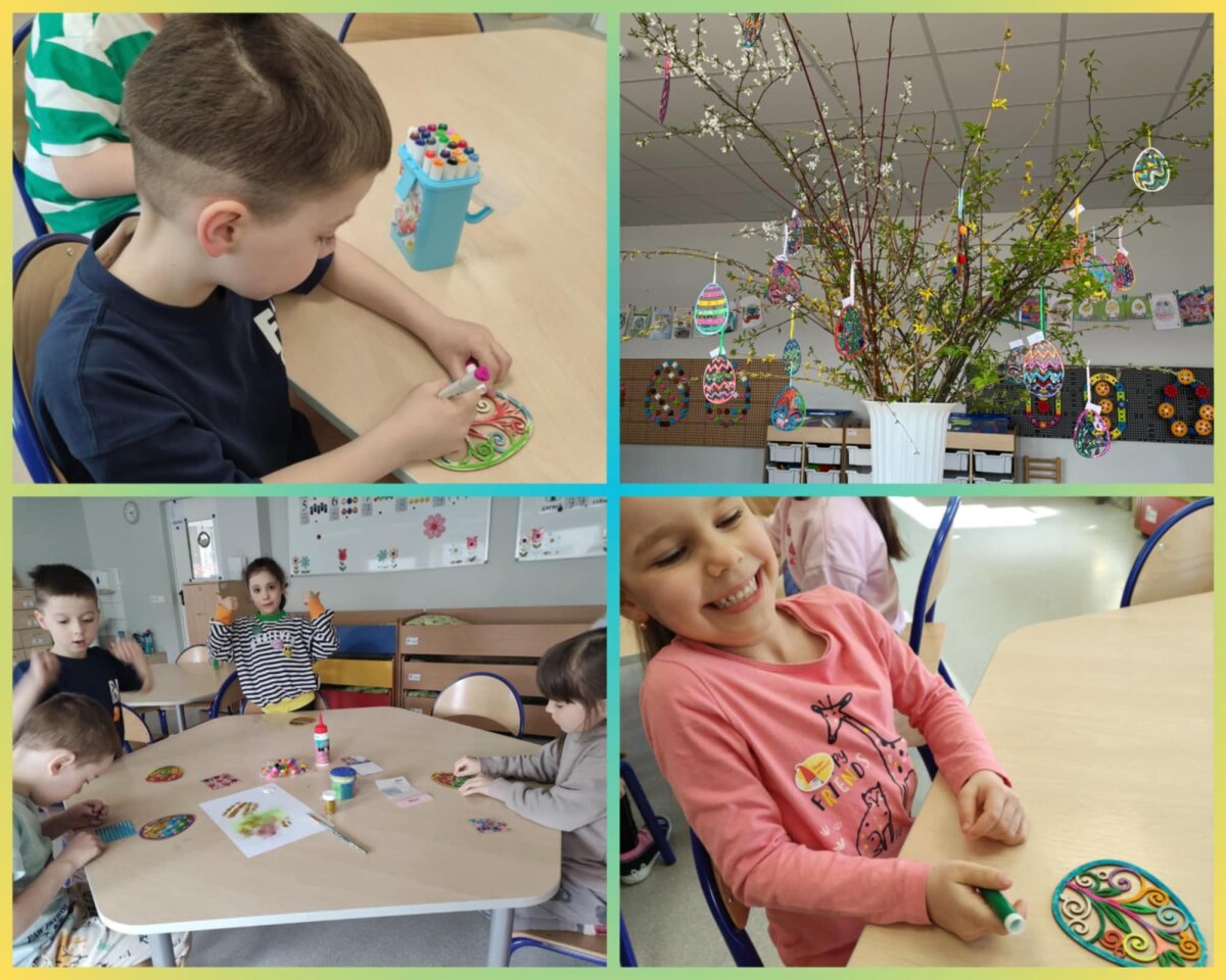 W ciągu ostatniego tygodnia w grupach przygotowawczych trwały intensywne przygotowania do Świąt Wielkanocnych. Dzieci z ogromnym zaangażowaniem malowały farbami pisanki, kolorowały oraz kleiły baranków, zajączków, tworzyły dekoracje. Szczególnym zadaniem było kolorowanie drewnianych jajek, które zawisły na wspólnie przygotowanym wielkanocnym drzewku. Nasi najmłodsi układali także jajka na tablicach edukacyjnych, ćwicząc przy tym logiczne myślenie i sprawność manualną. Uczestniczyły w republikańskim projekcie edukacyjnym "STEAM Pisanka wielkanocna" (lit. STEAM Velykinis margutis), którego celem było zachęcenie dzieci do odkrywania, konstruowania, tworzenia zabawnych prac twórczych, poszerzania i pogłębiania wiedzy o Wielkanocy. Nie zabrakło też ciekawych doświadczeń – eksperymenty z jajkami, doświadczenie z drożdżami i balonem oraz mieszanie kolorów. W zerówce zrobiło się bardzo wiosennie, kolorowo i świątecznie. Dzięki tym aktywnościom dzieci nie tylko świetnie się bawiły, ale też uczyły się współpracy i poznawały znaczenie świąt.