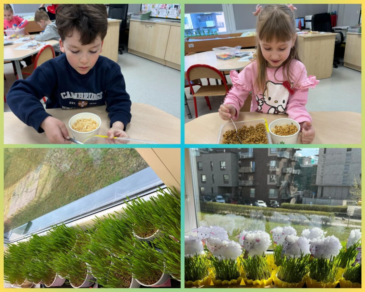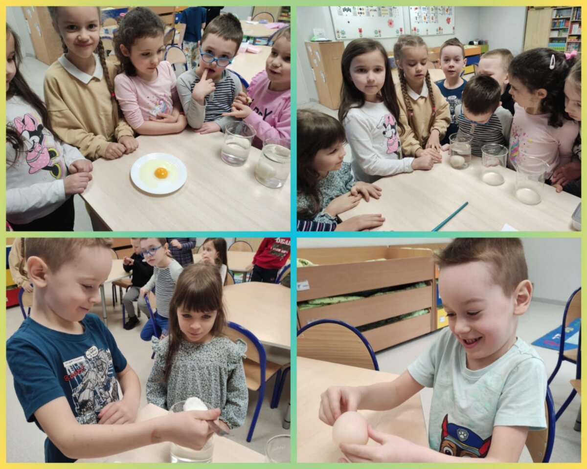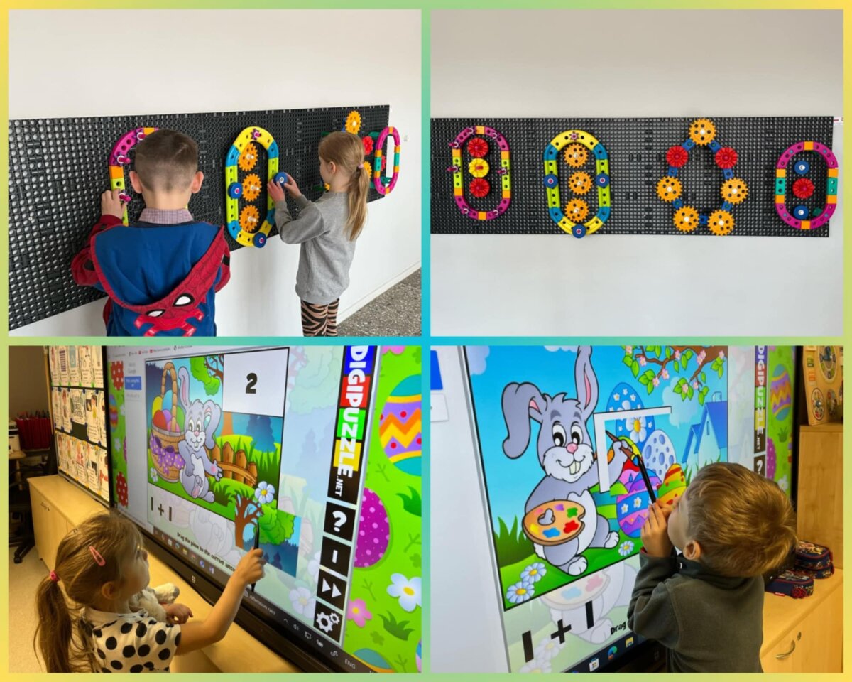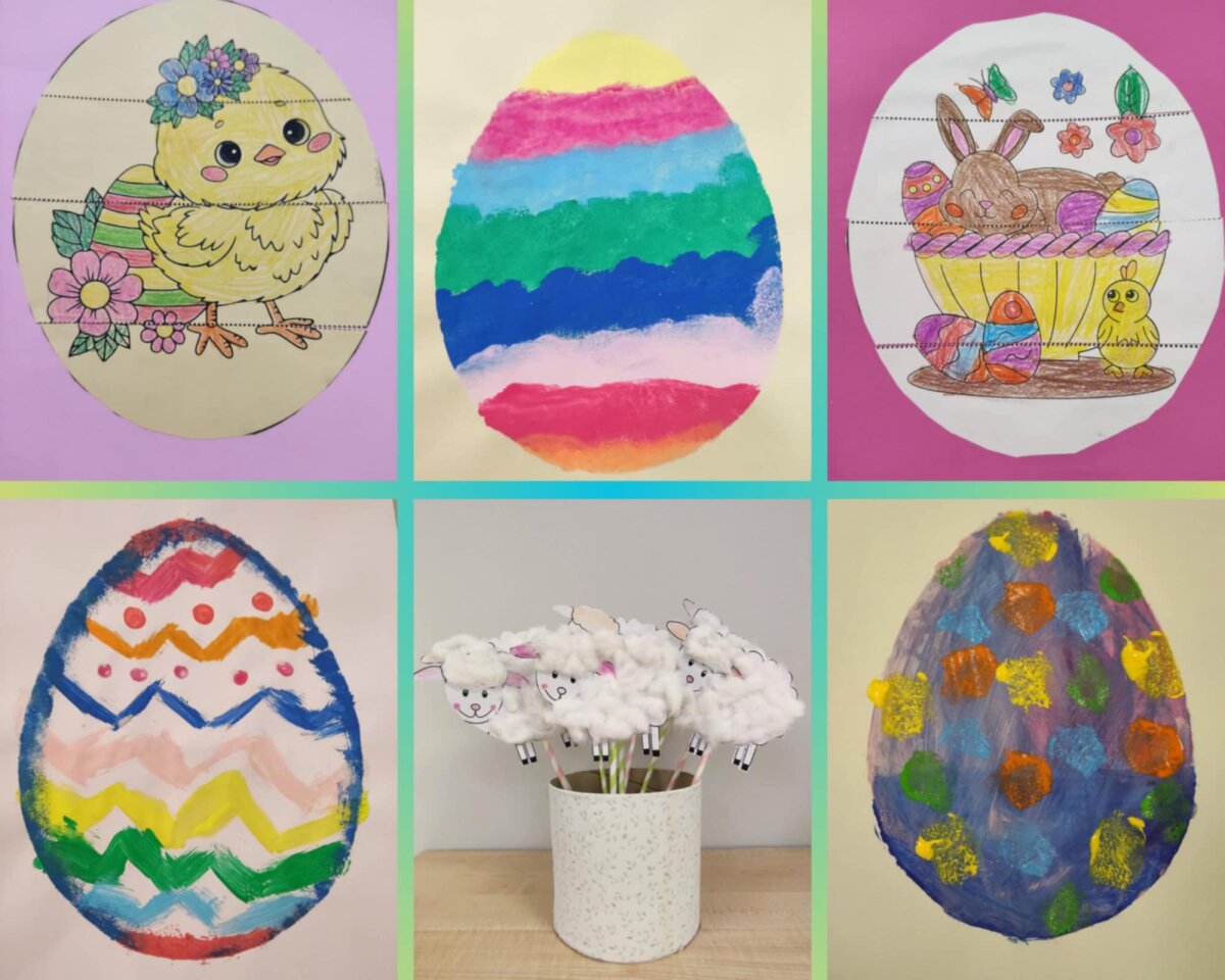 W ciągu ostatniego tygodnia w grupach przygotowawczych trwały intensywne przygotowania do Świąt Wielkanocnych. Dzieci z ogromnym zaangażowaniem malowały farbami pisanki, kolorowały oraz kleiły baranków, zajączków, tworzyły dekoracje. Szczególnym zadaniem było kolorowanie drewnianych jajek, które zawisły na wspólnie przygotowanym wielkanocnym drzewku. Nasi najmłodsi układali także jajka na tablicach edukacyjnych, ćwicząc przy tym logiczne myślenie i sprawność manualną. Uczestniczyły w republikańskim projekcie edukacyjnym "STEAM Pisanka wielkanocna" (lit. STEAM Velykinis margutis), którego celem było zachęcenie dzieci do odkrywania, konstruowania, tworzenia zabawnych prac twórczych, poszerzania i pogłębiania wiedzy o Wielkanocy. Nie zabrakło też ciekawych doświadczeń – eksperymenty z jajkami, doświadczenie z drożdżami i balonem oraz mieszanie kolorów. W zerówce zrobiło się bardzo wiosennie, kolorowo i świątecznie. Dzięki tym aktywnościom dzieci nie tylko świetnie się bawiły, ale też uczyły się współpracy i poznawały znaczenie świąt.