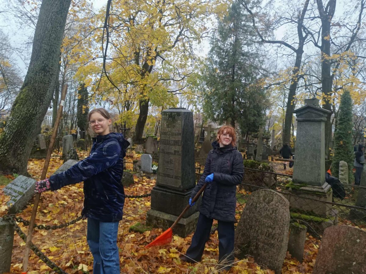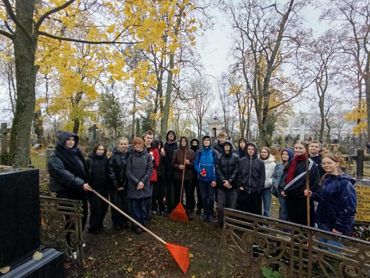 W ostatnich dniach października uczniowie klas 5-8, I-IV po lekcjach wraz z wychowawcami i przedstawicielami rodziców uczestniczyli w akcji sprzątania wileńskich nekropolii, organizowanej przez Społeczny Komitet Opieki nad Starą Rossą. Jak co roku Syrokomlówka uporządkowała dość pokaźną powierzchnię Cmentarza Bernardyńskiego. Oprócz tego każda klasa, odpowiedzialna za jakieś konkretne nagrobki osób, które w swoim czasie działały dla Wilna i jej mieszkańców, złożyła wieńce i zapaliła znicze.