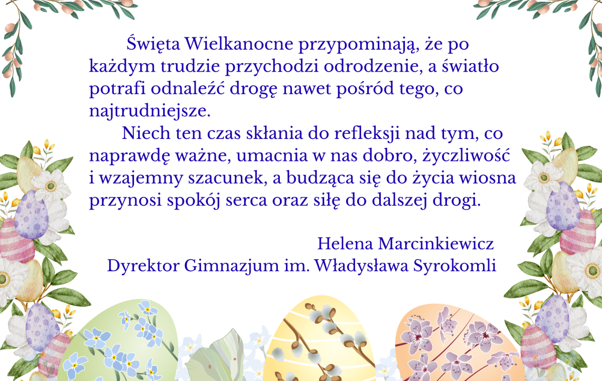 Życzenia wielkanocne Dyrektora Gimnazjum 2026