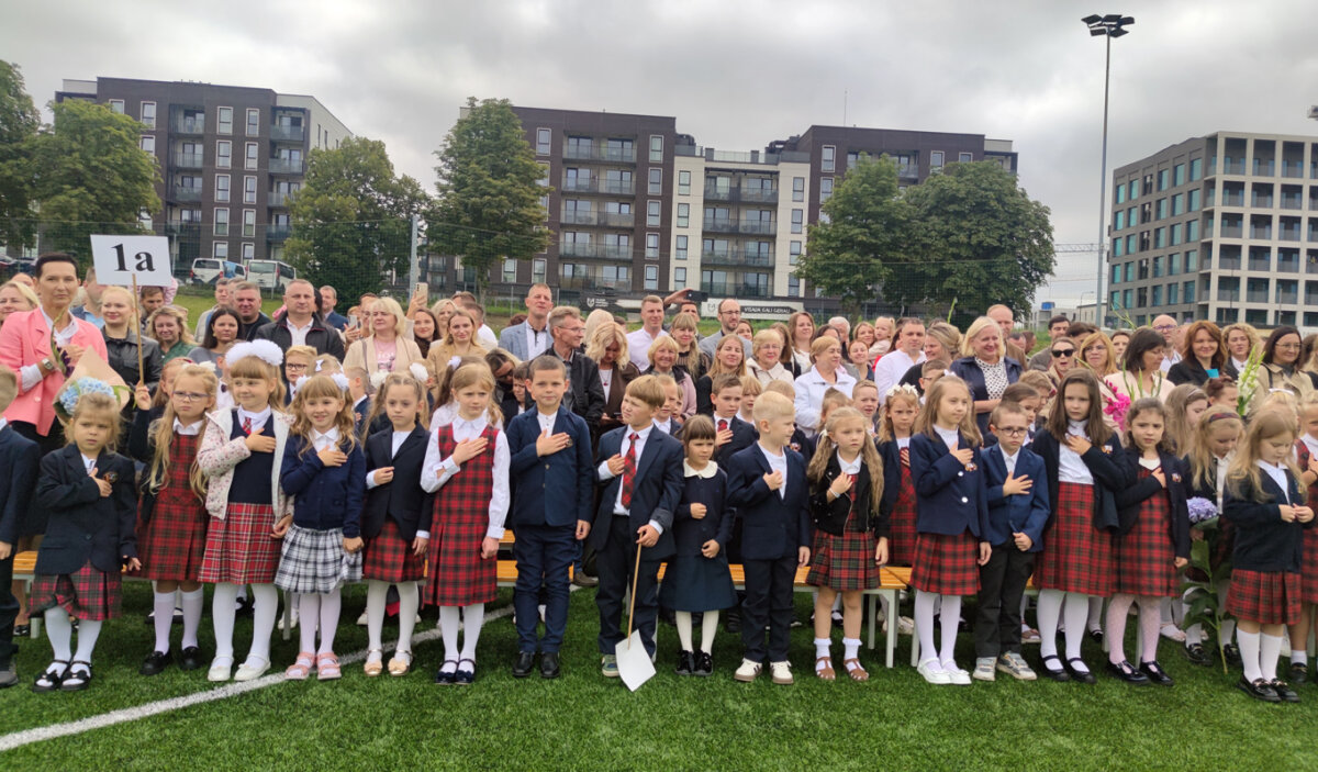 Rugsėjo 1-ąją Vilniaus Vladislavo Sirokomlės gimnazijos stadione iškilmingai pra... -