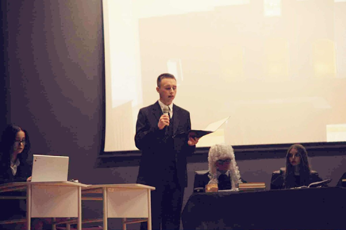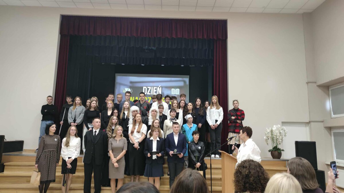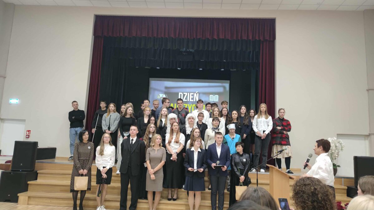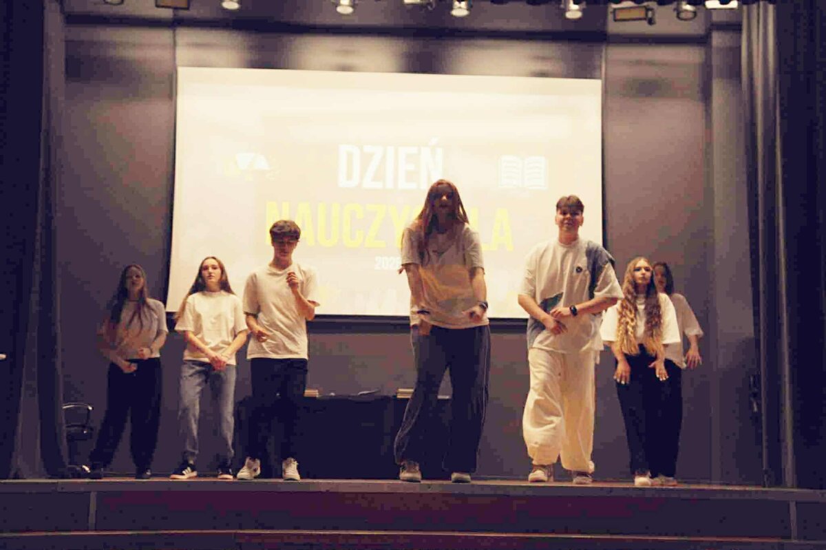 W piątek, 3 października, w naszym Gimnazjum im. Władysława Syrokomli odbył się niezwykły program artystyczny z okazji Dnia Nauczyciela. W tym roku uczniowie przygotowali spektakl pod tytułem „Sąd nauczycieli”, który wzbudził wśród wszystkich obecnych wiele emocji – od śmiechu po wzruszenie. Już sam widok tej scenografii zapowiadał, że to nie będzie zwykłe wystąpienie: scena wyglądała jak prawdziwa sala sądowa, w środku znajdowali się sędziowie. Przedstawienie rozpoczęło się poważnie, ale bardzo szybko okazało się, że to był tylko żart. „Oskarżenia” wobec nauczycieli były zabawne i pełne ciepła: ktoś „winny” był zbyt trudnych klasówek, a ktoś - „nadmiaru twórczości” podczas lekcji. Każdy zarzut kończył się wesołym wyrokiem. Mimo żartobliwej formy, w całym przedstawieniu odczuwały się ogromny szacunek i wdzięczność wobec nauczycieli. Na zakończenie „sędzia” ogłosił wyrok: „Wszyscy nauczyciele są winni… zbyt wielkiego serca i poświęcenia dla swoich uczniów.” To przedstawienie pokazało, że w naszej szkole panuje wyjątkowa atmosfera – pełna humoru, serdeczności i wzajemnego zrozumienia.