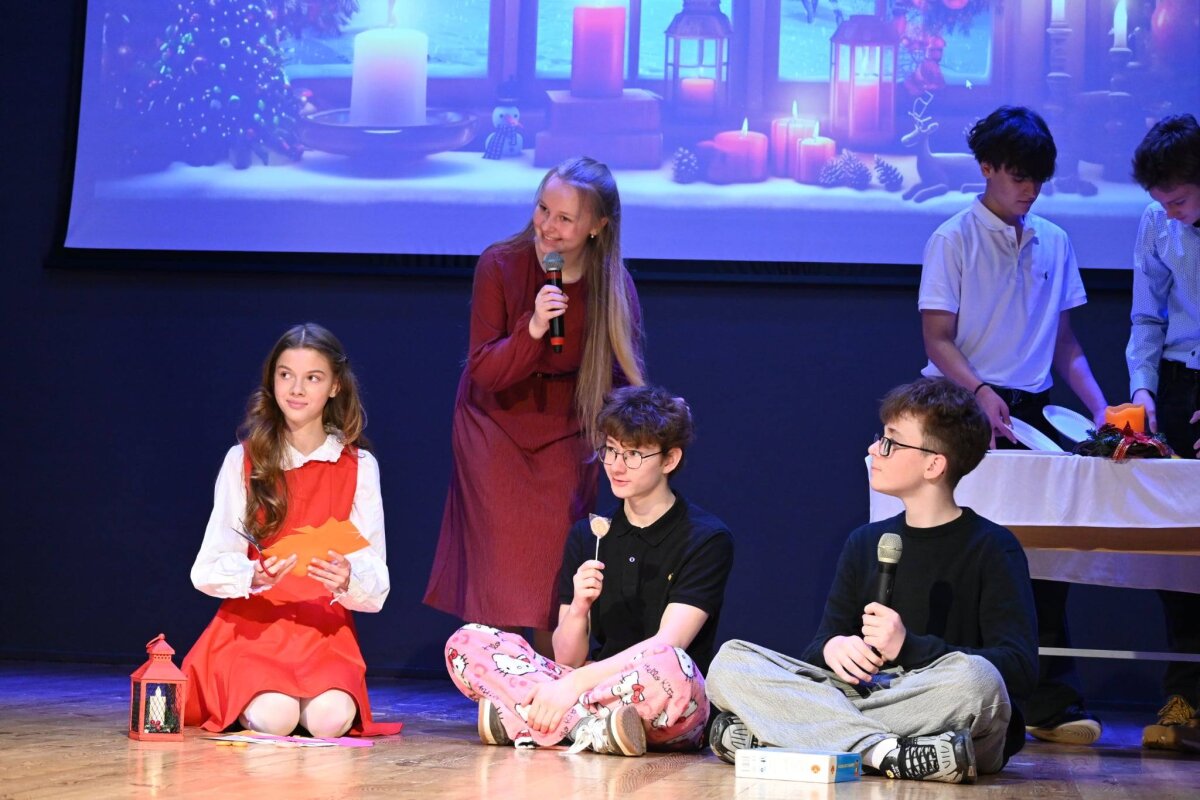 Wyjątkowego charakteru całemu widowisku nadała oprawa muzyczna. Wzruszające, tradycyjne kolędy w wykonaniu naszych uczniów sprawiły, że na sali zapanowała atmosfera pełna ciepła i refleksji.