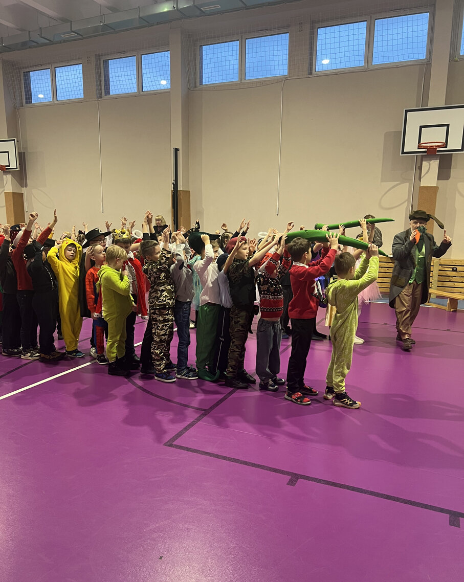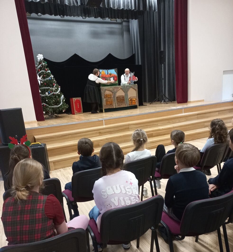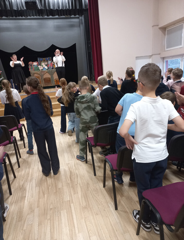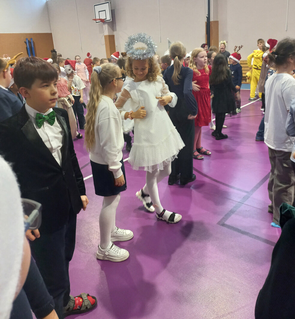 Ostatnie dwa dni przed wakacjami dzieci z zeróweczek oraz klas początkowych odczuli magię zbliżających się Świąt dzięki aktorom Teatru ,,Pod Orzełkiem'' z Polski. Pierwszego dnia dzieci obejrzały piękne przedstawienie, w którym w Wigiijną Noc postacie z książek przemawiały do widza. W przedstawionych jasełkach uczestniczyły złe postacie z bajek, które zbuntowały się przeciwko swoim rolom i pomagały małemu Jezuskowi. Do tego aktorzy śpiewali piękne kolędy i pastorałki.