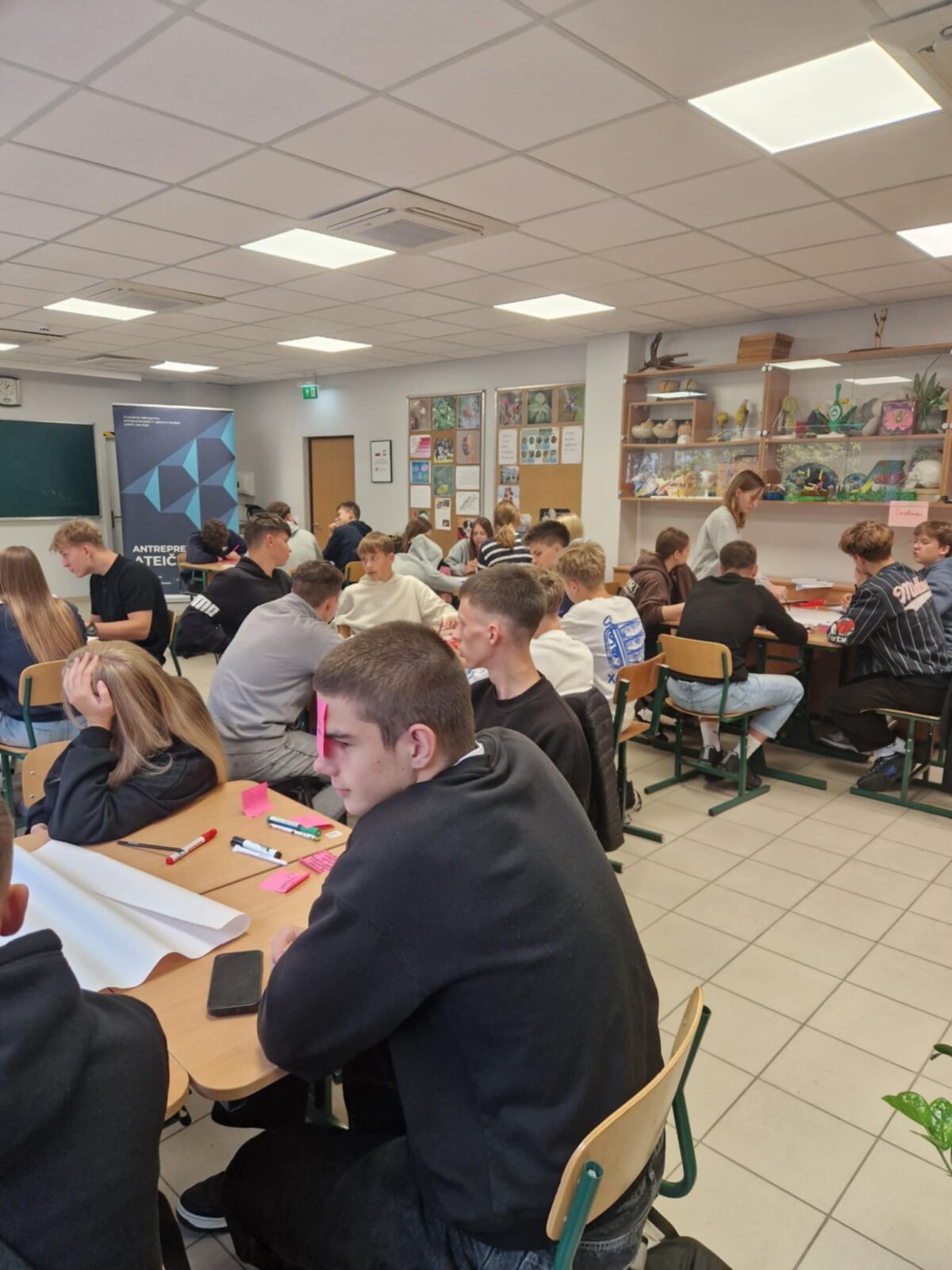 W naszym Gimnazjum odbyło się całodniowe szkolenie dla młodych przedsiębiorców wg programu Lietuvos Junior Achievement. Uczniowie 10-11 klas, którzy myślą w przyszłości założyć własny biznes, próbowali krok po kroku realizować w grupach własne start-up: od sposobów rozwiązania problemów, do tworzenia jego prototypów i reprezentowania dla "potencjalnych inwestorów". Była to też możliwość przekonać się, jaka pomysłowa, twórcza i szczególna jest nasza młodzież! Zadanie dofinansowane w ramach sprawowania opieki Senatu Rzeczypospolitej Polskiej nad