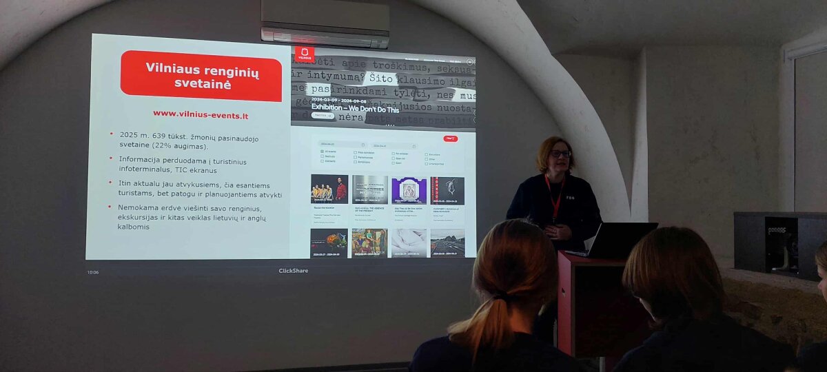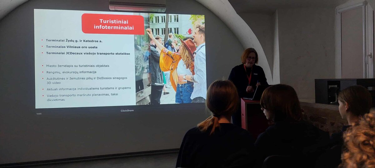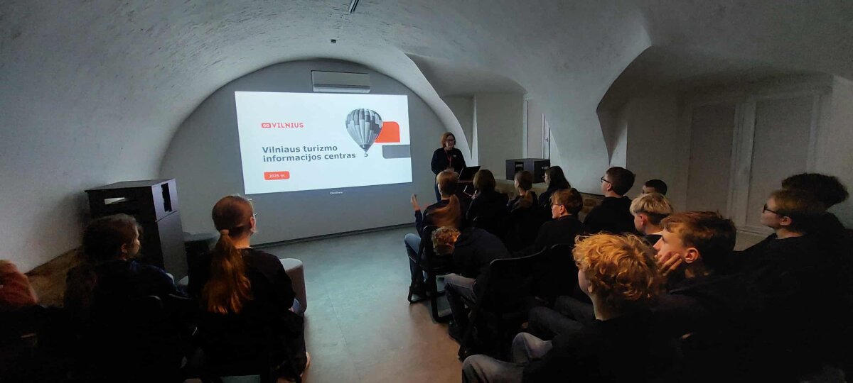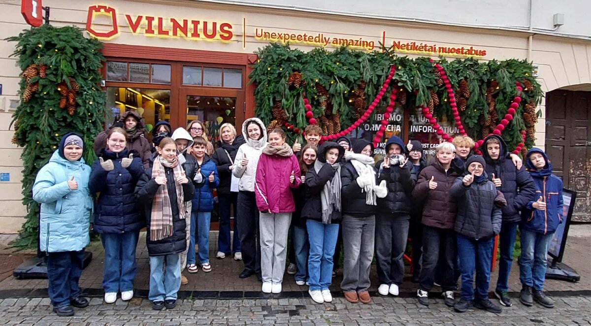 Turystyka w Wilnie: od informacji do doświadczenia – jak działa Go Vilnius Zintegrowana lekcja geografii i doradztwa zawodowego 19 listopada uczniowie klasy 7C uczestniczyli w zintegrowanej lekcji geografii oraz doradztwa zawodowego w Centrum Informacji Turystycznej VšĮ „Go Vilnius”. Podczas zajęć uczniowie dowiedzieli się, jak funkcjonuje centrum informacji turystycznej, jakie usługi oferuje odwiedzającym miasto oraz w jaki sposób kreowany jest wizerunek Wilna w oczach turystów. Uczniowie poznali specyfikę pracy specjalistów ds. turystyki, wymagane kompetencje, dynamikę tego sektora oraz możliwości rozwoju kariery. Zapoznali się również z ekosystemem turystycznym, w którym współpracują instytucje miejskie, przedsiębiorcy, społeczności lokalne oraz turyści. Po edukacji uczniowie omówili zasady zrównoważonej turystyki, znaczenie dziedzictwa kulturowego oraz aspekty rozwoju miasta. Lekcja przyczyniła się do rozwijania kompetencji poznawczych, komunikacyjnych, kulturowych oraz obywatelskich.